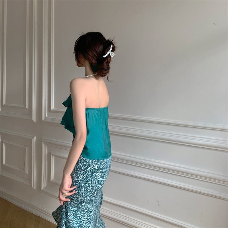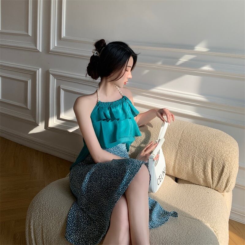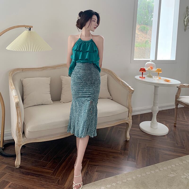 色:マラカイトグリーンホルター,白いホルターネック,マラカイトグリーンのヒョウスカート,ホワイトヒョウスカート