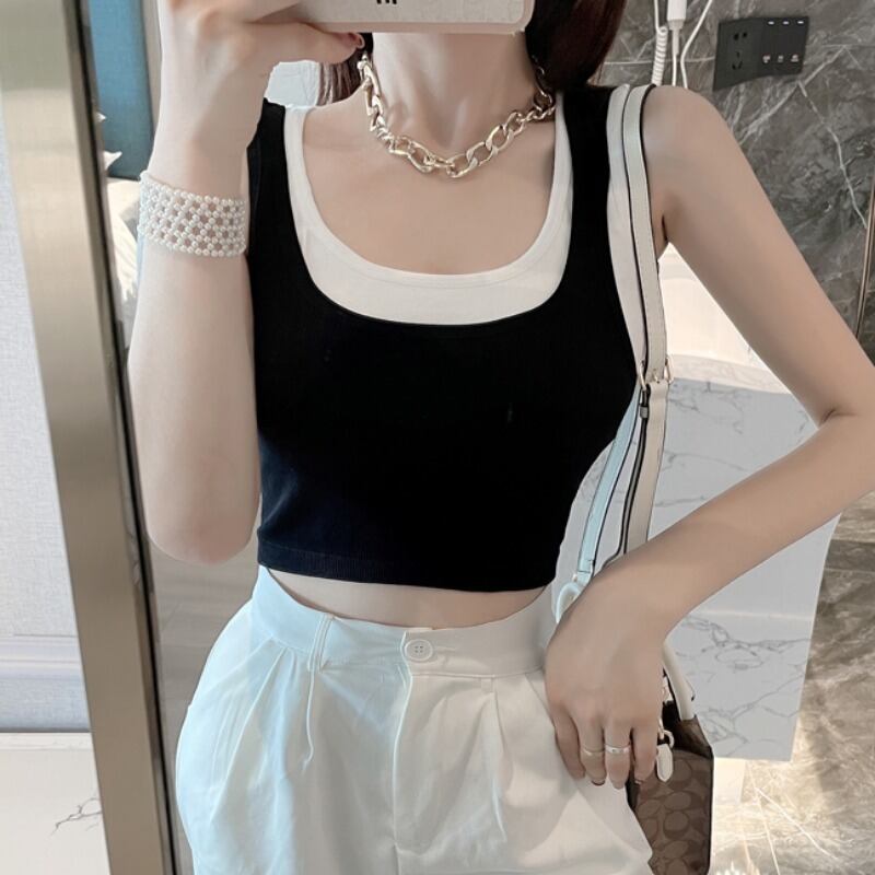 ノースリーブショートスリムブラウス レディース ハンチェンe32278218269