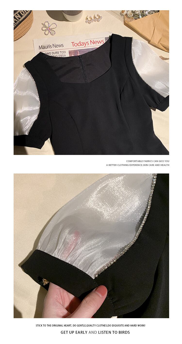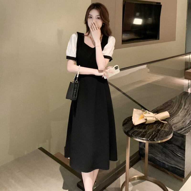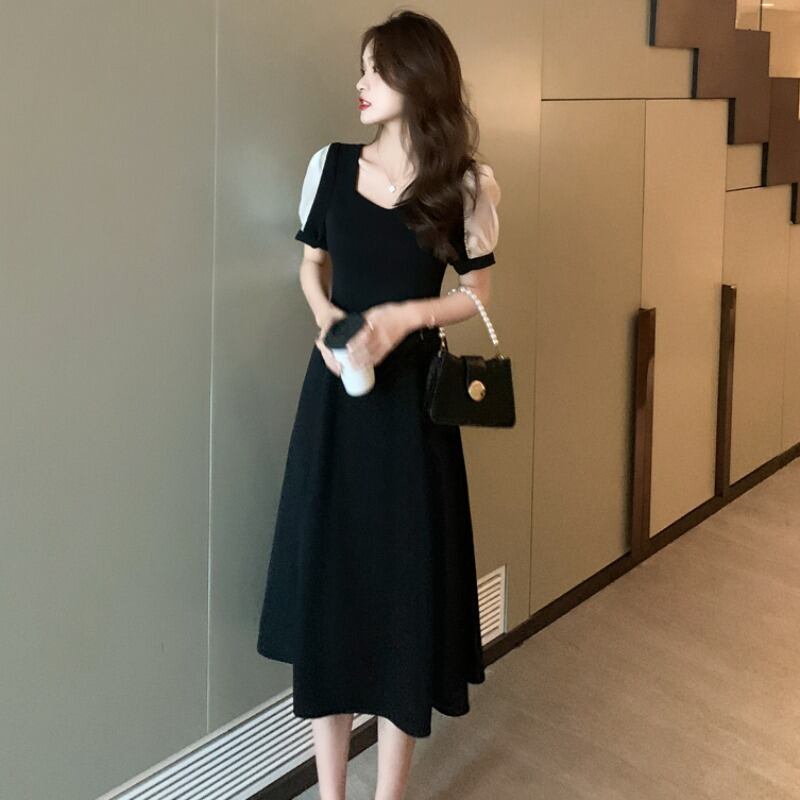 スリーブドレス ウェストロングスカート スクウェア ハンチェンe17619076867