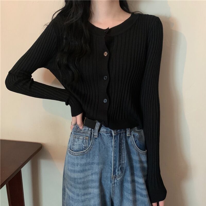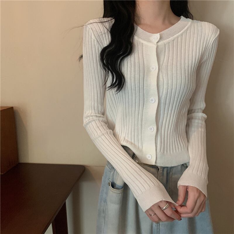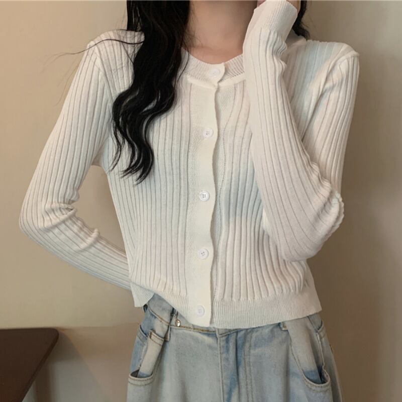 スタイル薄手ニットカーディガンオータムスリムソリッド カラーショートトップス レディース ロング 秋物 ソリッドカラー ハンチェンe17984275485