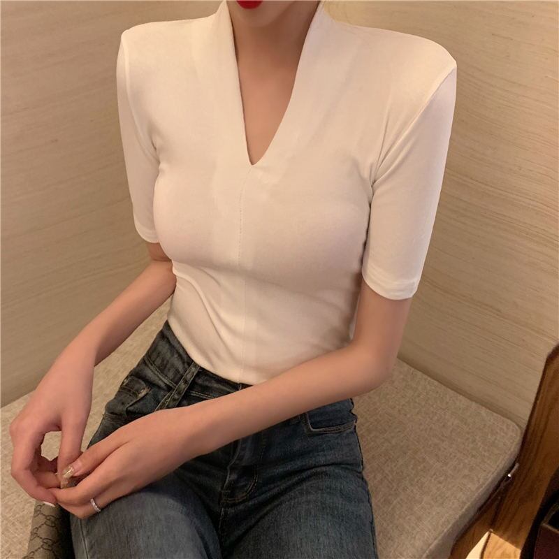 VネックTシャツ シャツ 薄手ソリッド カラー ソリッドカラー ハンチェンe72593732187