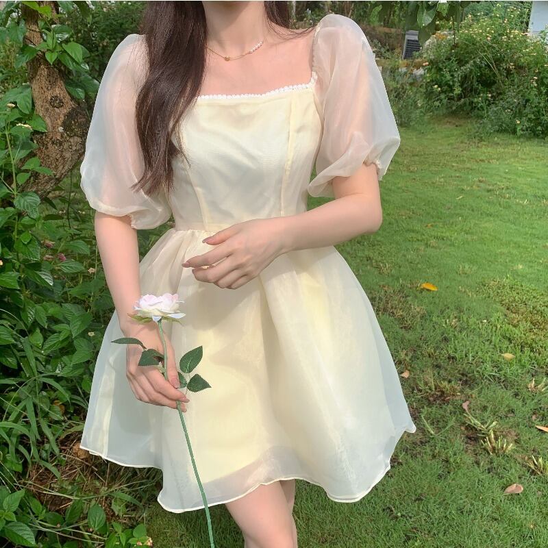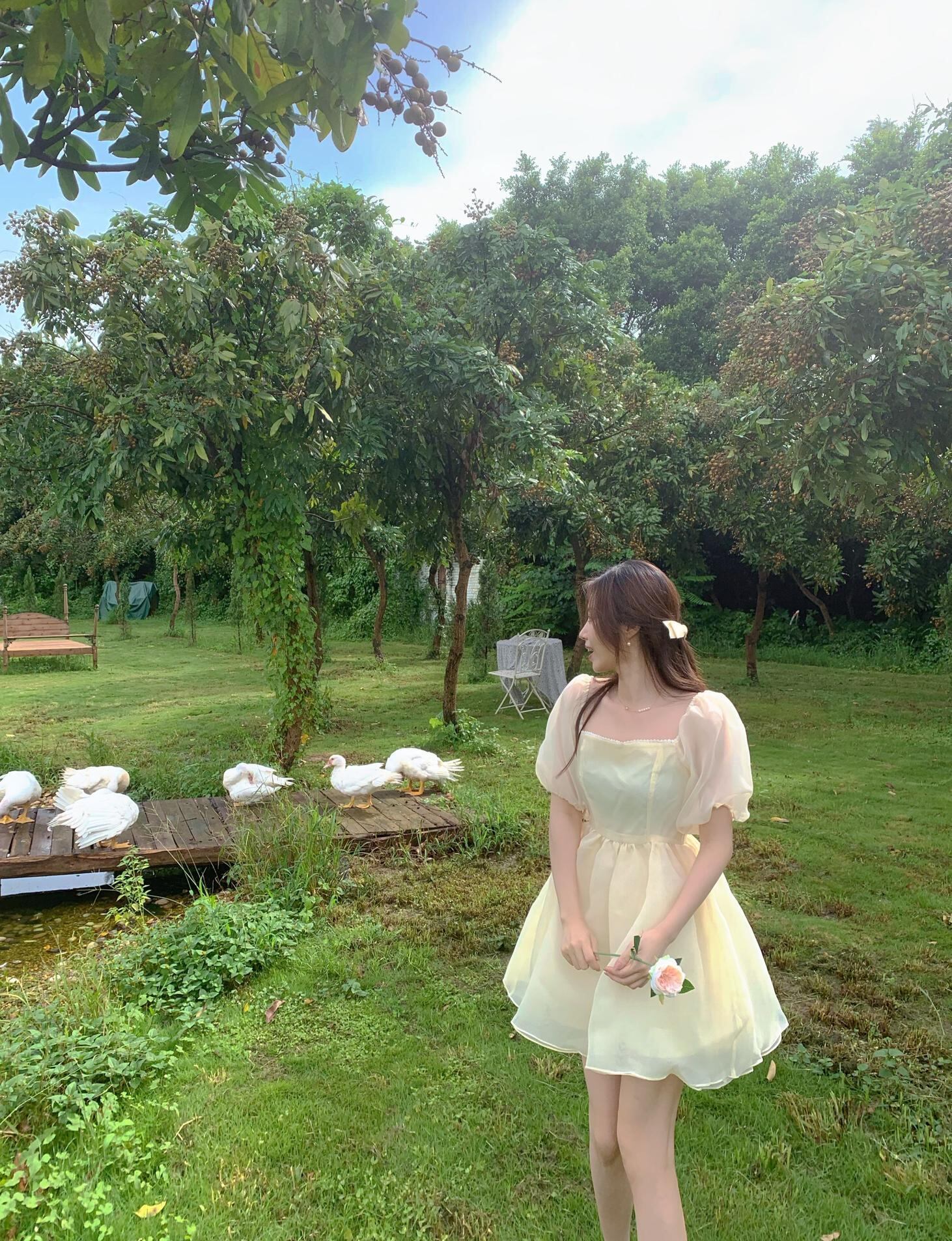 スタイルショートスカート カラースリーブドレス レディース レース スクウェア ハンチェンe10435633919