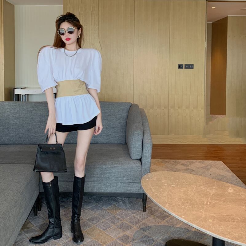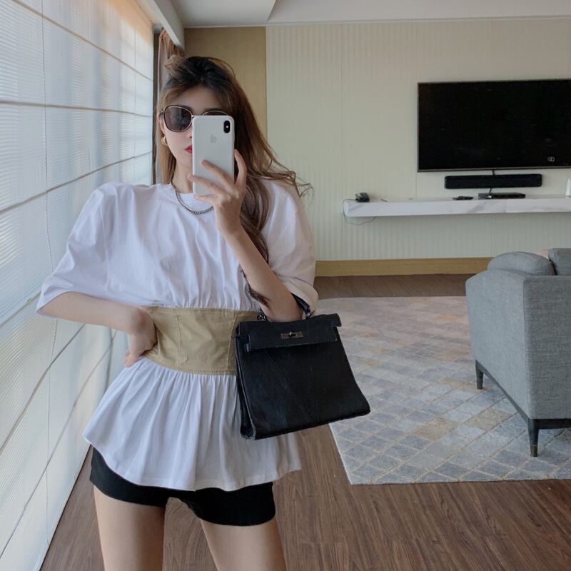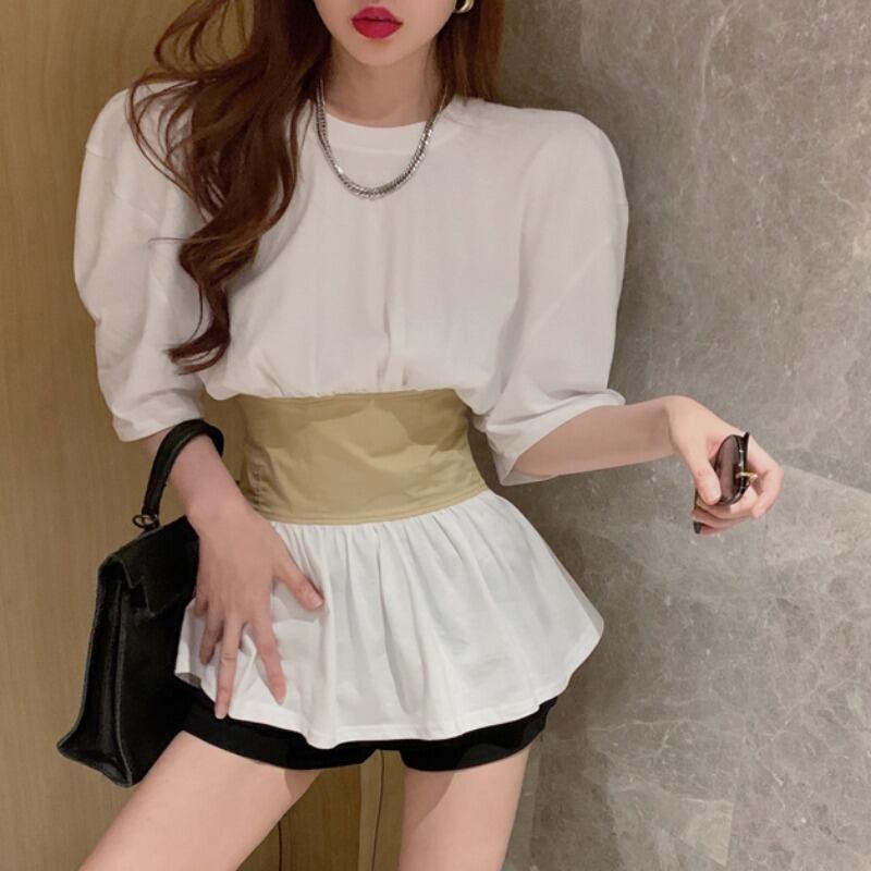 バックレースTシャツ レディースラウンドネックソリッド カラーウェストスリムトップス Oネック ソリッドカラー ハンチェンe6599088045
