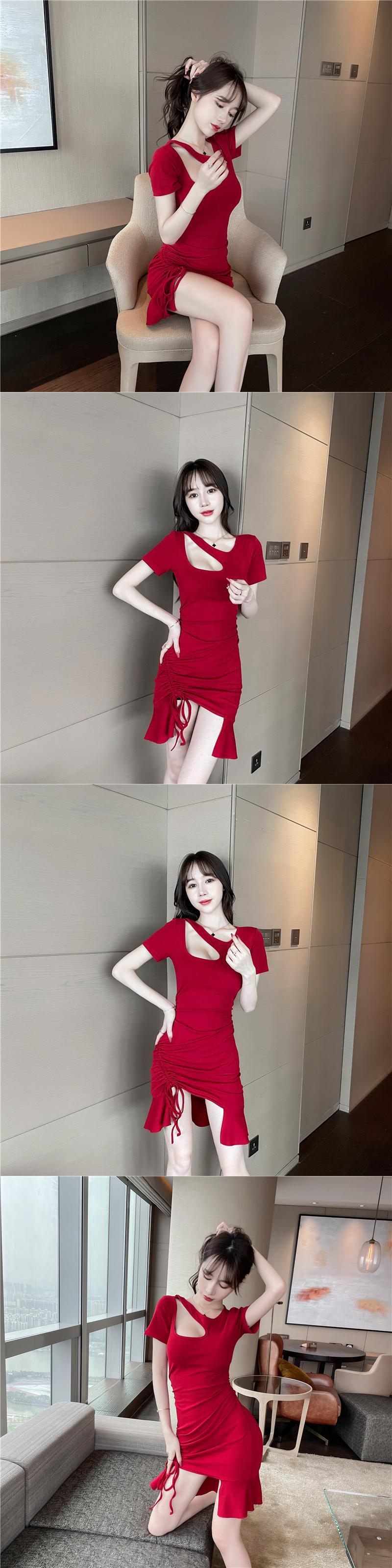 ショートスカート ギャザースリムドレス スリムヒップ ハンチェンe96729438184
