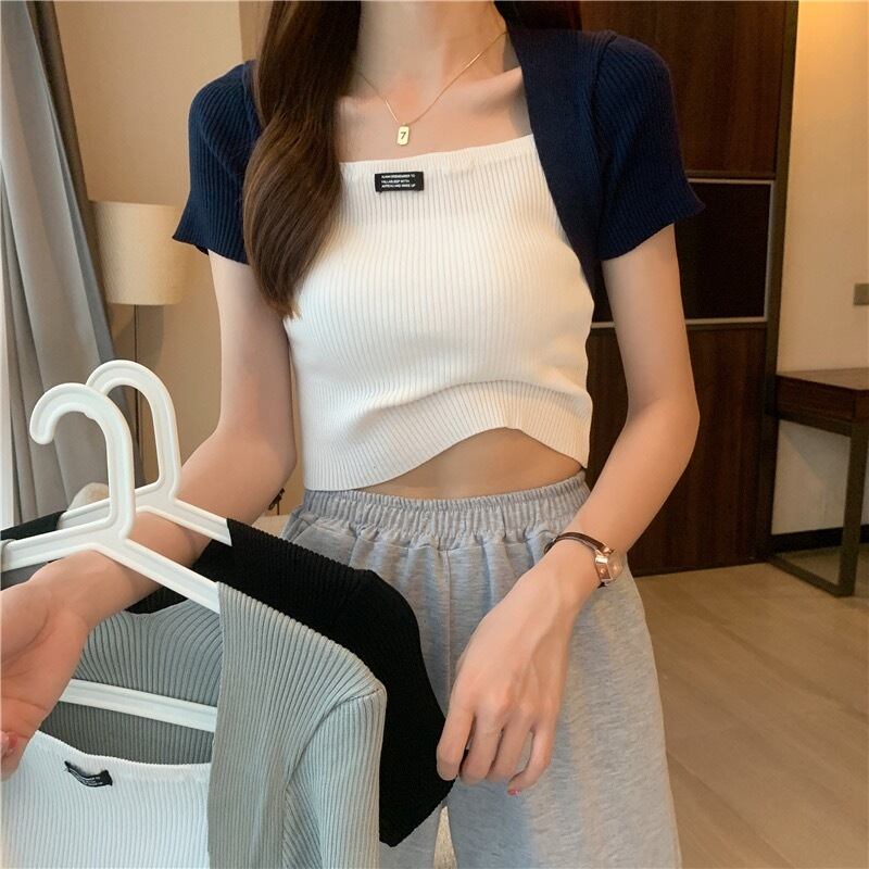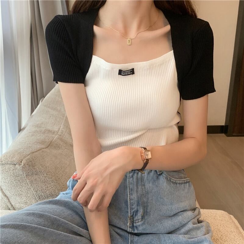 スタイルショートセーター カラートップス レディース スクウェア ハンチェンe63359365976