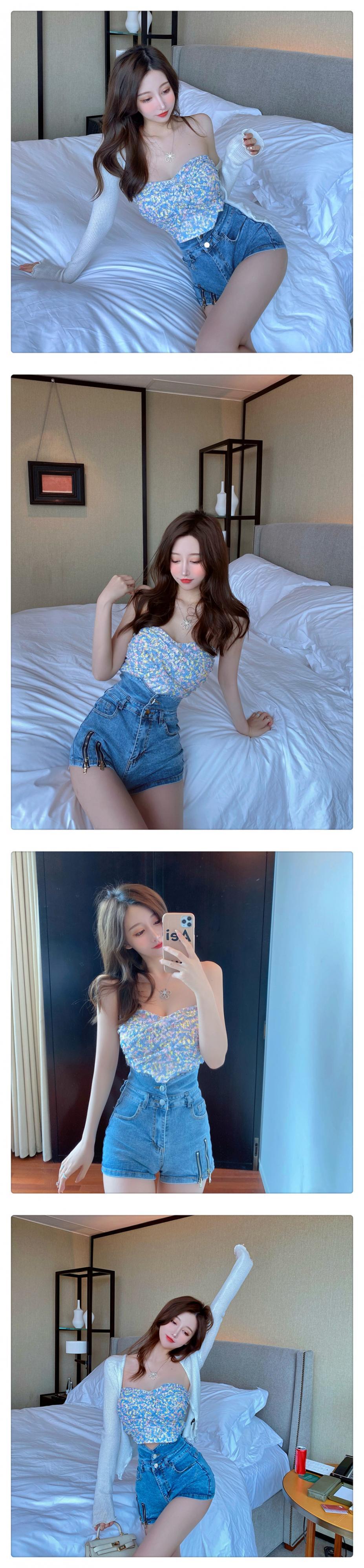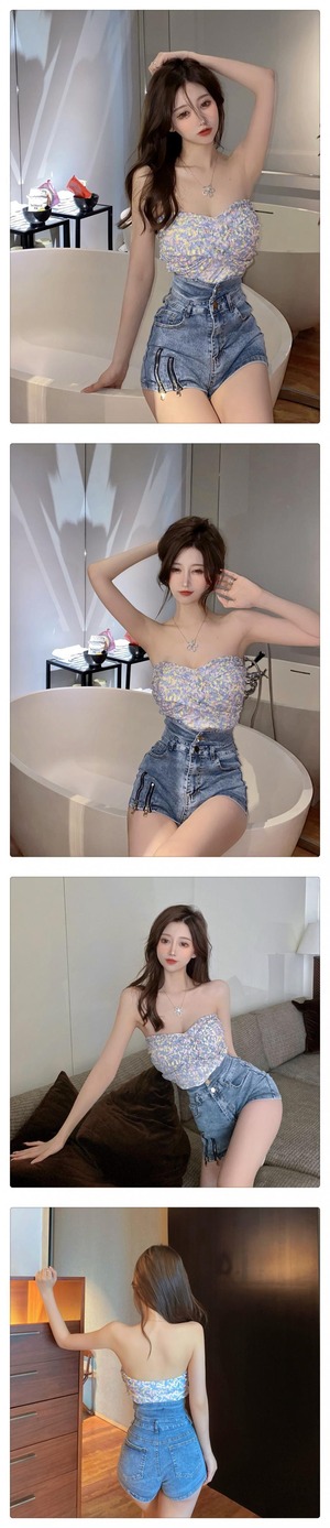 スタンダードフローラルトップス ショートレディース レトロ 花柄 ハンチェンe84731983465