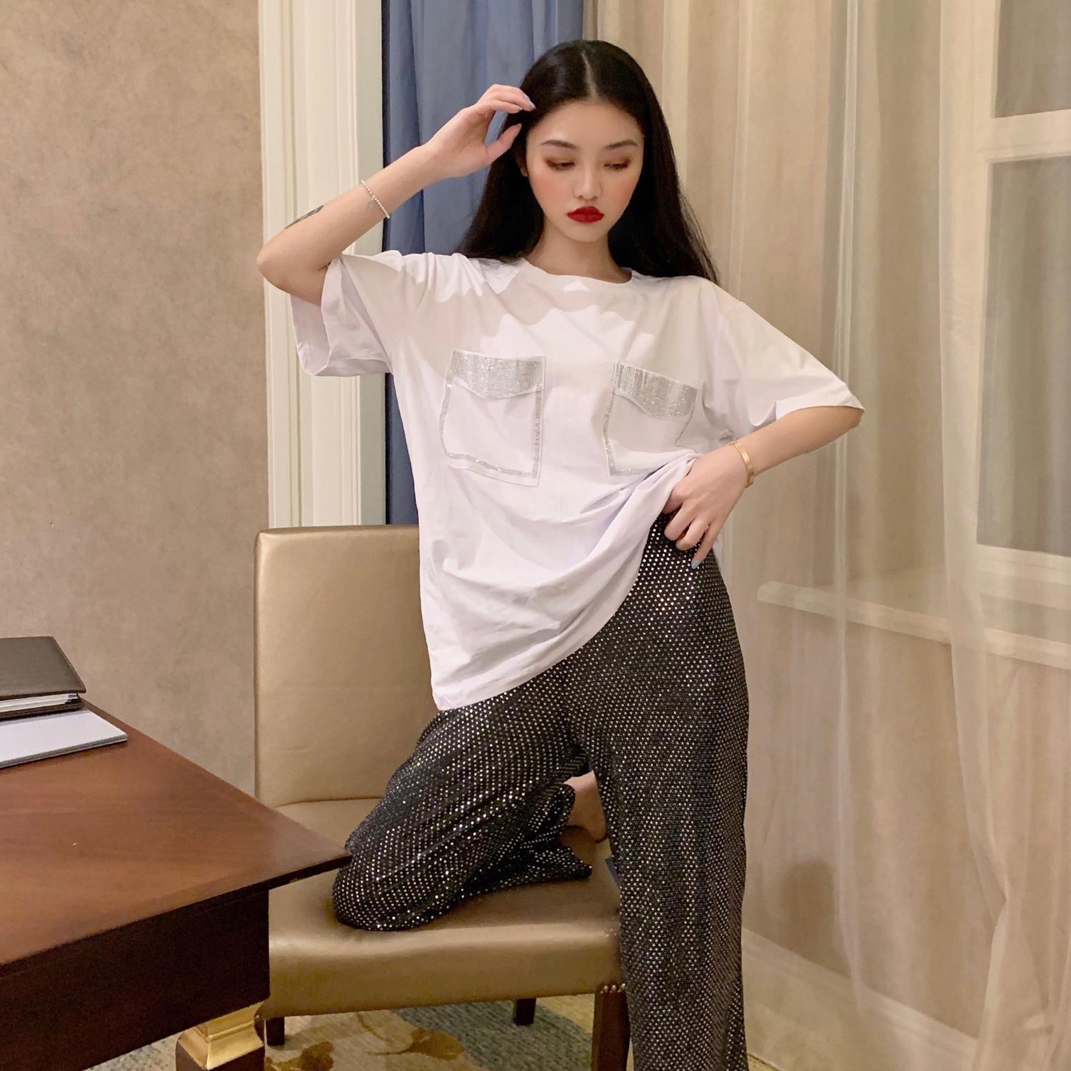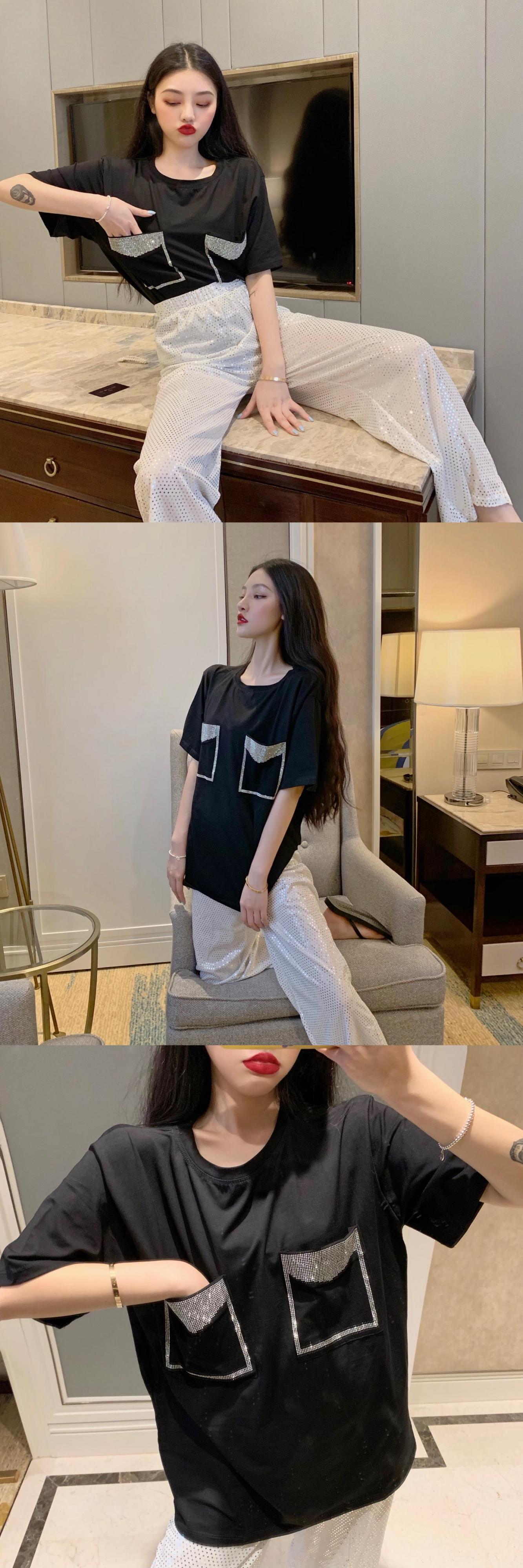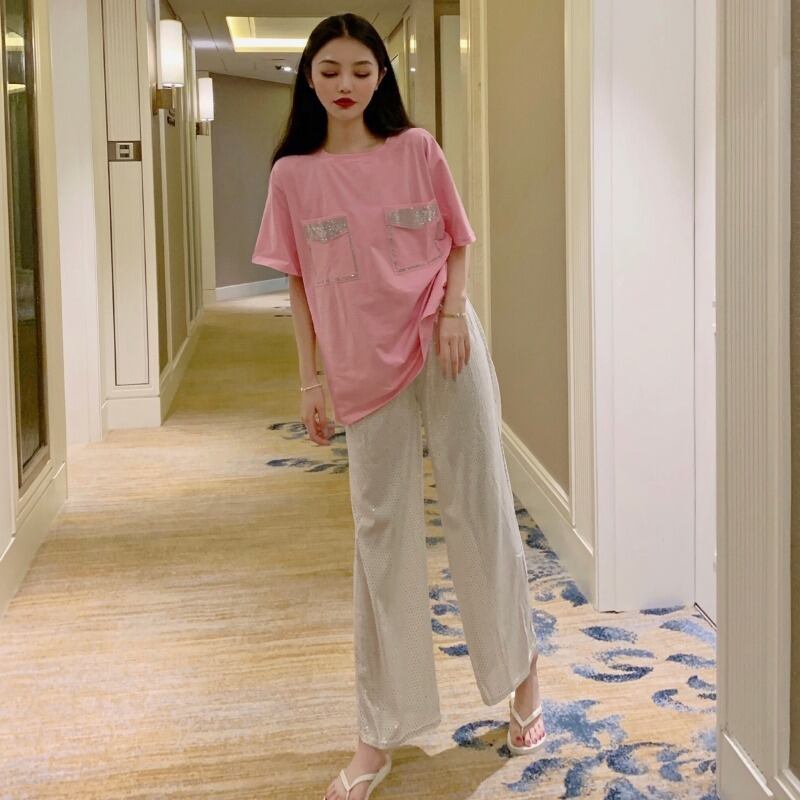 半袖スリーブTシャツ ウェストワイドレッグパンツ ショート ハーフスリーブ ストリート ワイドパンツ ハンチェンe36110728026