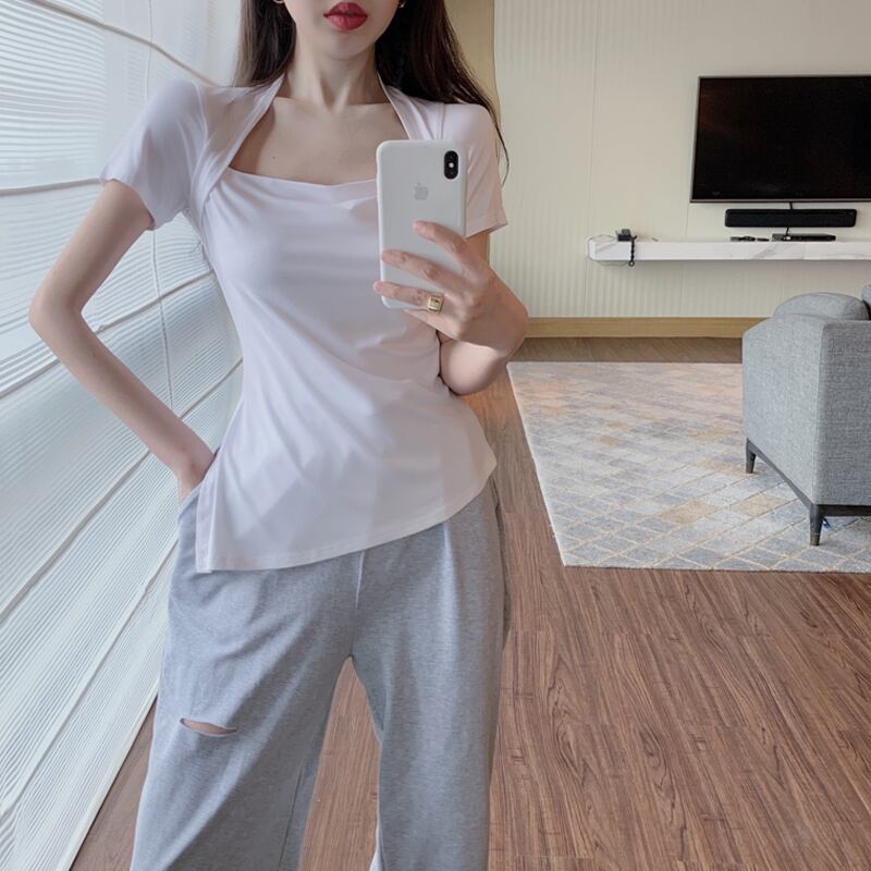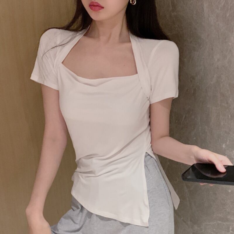 Tシャツ レディーススリムトップス スクウェア ハンチェンe40227502904