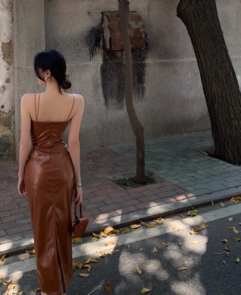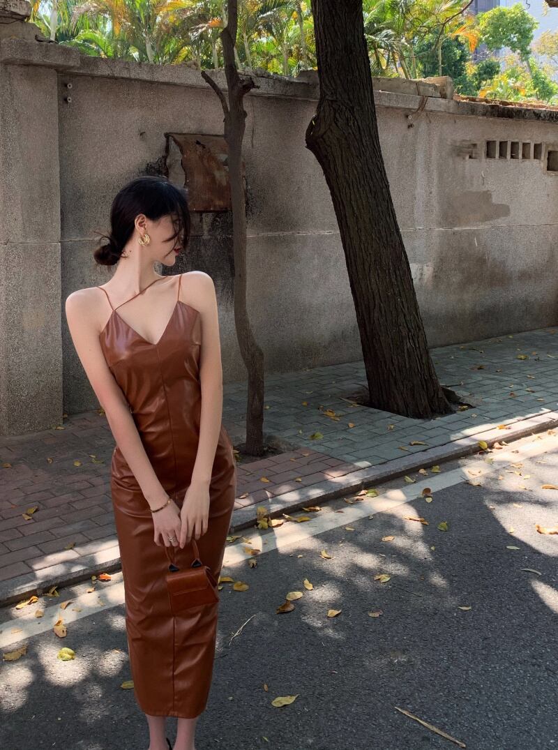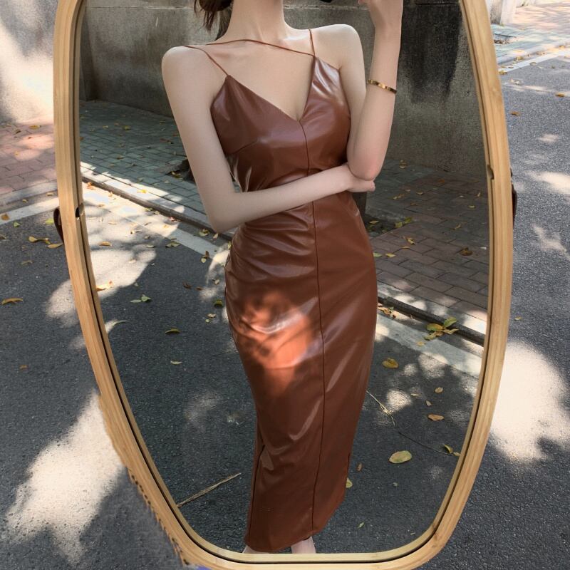 ドレス サマーVネックスリムロングスカート 夏物 ハンチェンe43541557837