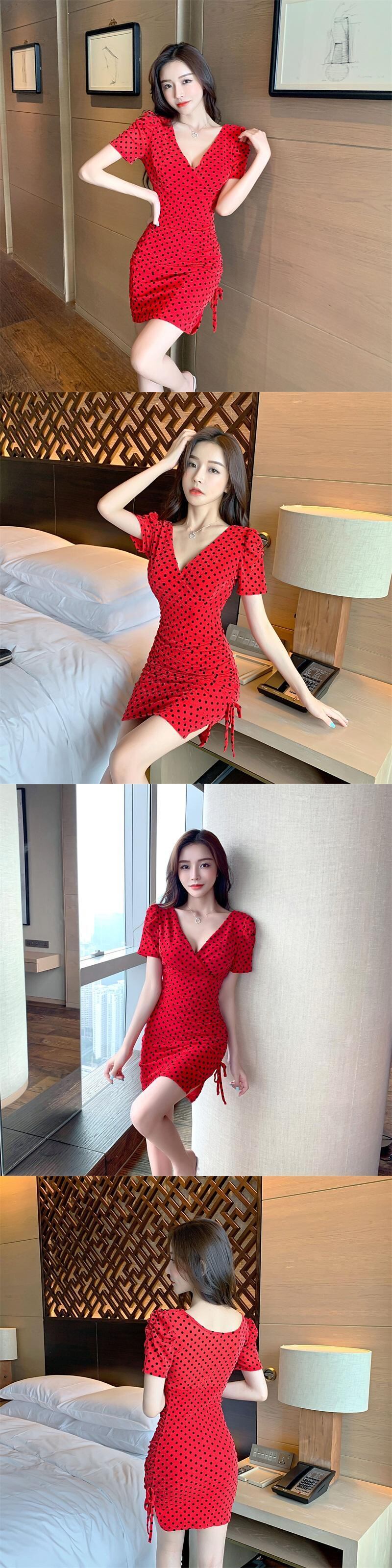 ウェストショートスカート Vネックスリムドレス レディース ハンチェンe80649603493