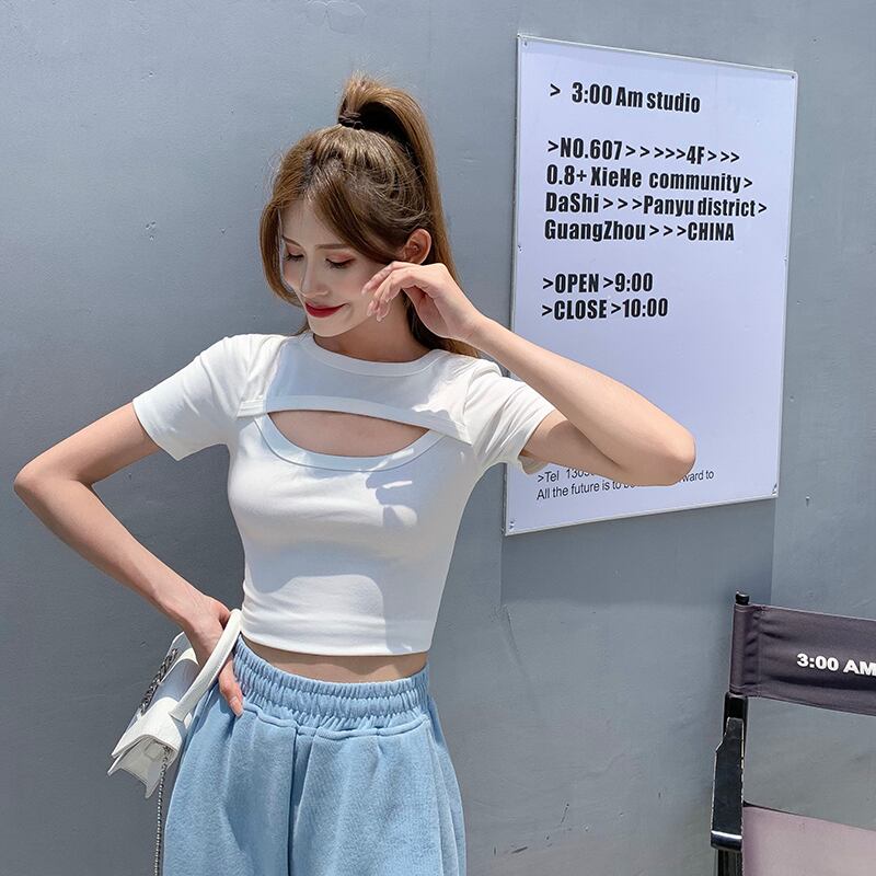 Tシャツ サマーショートスリムブラウス 夏物 ハンチェンe17441914414