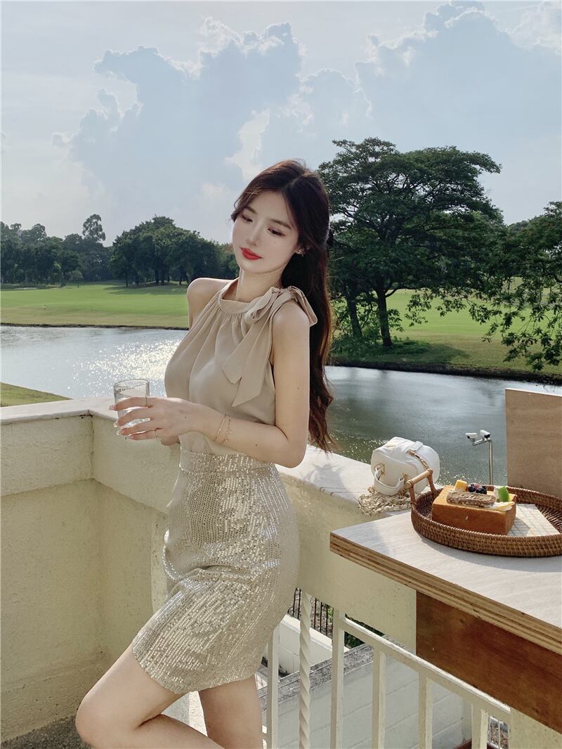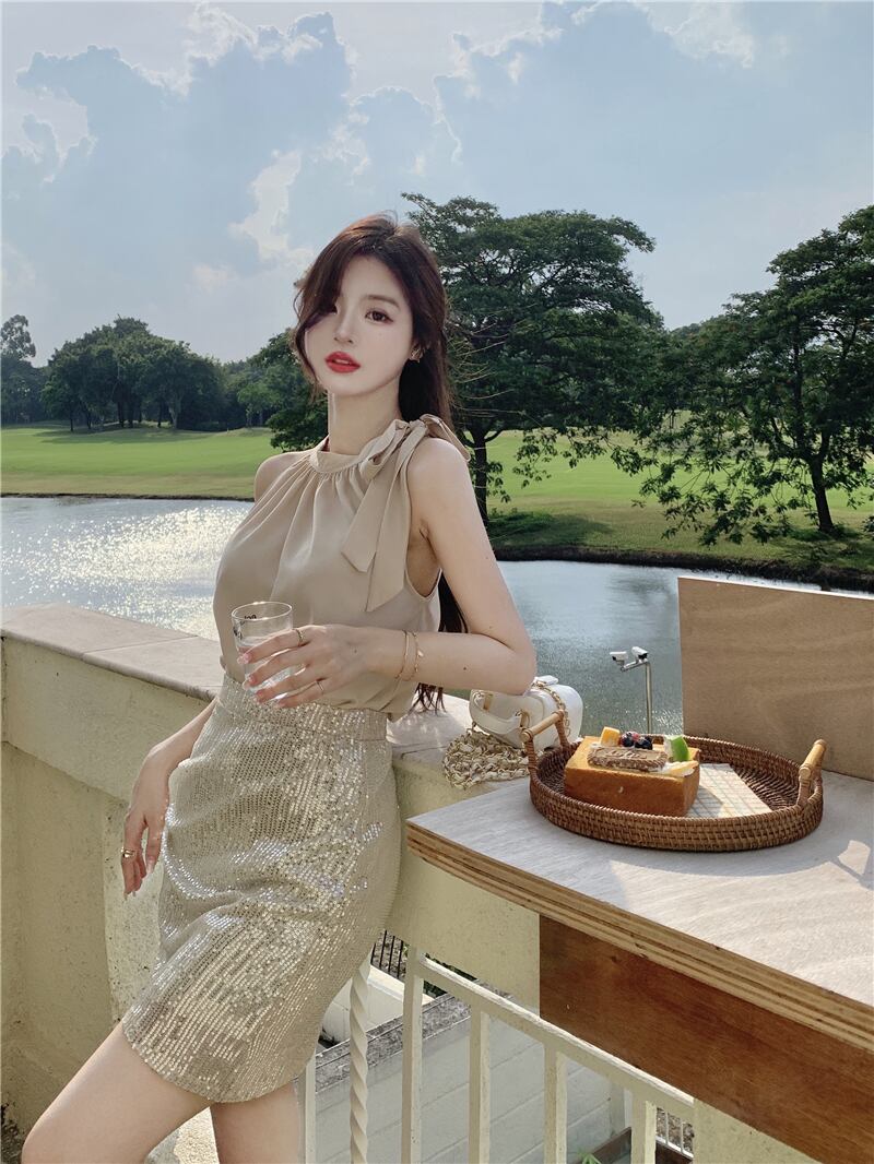 ストラップレスシャツ ハイウェストウェストスカート ストリート ハンチェンe53769866726