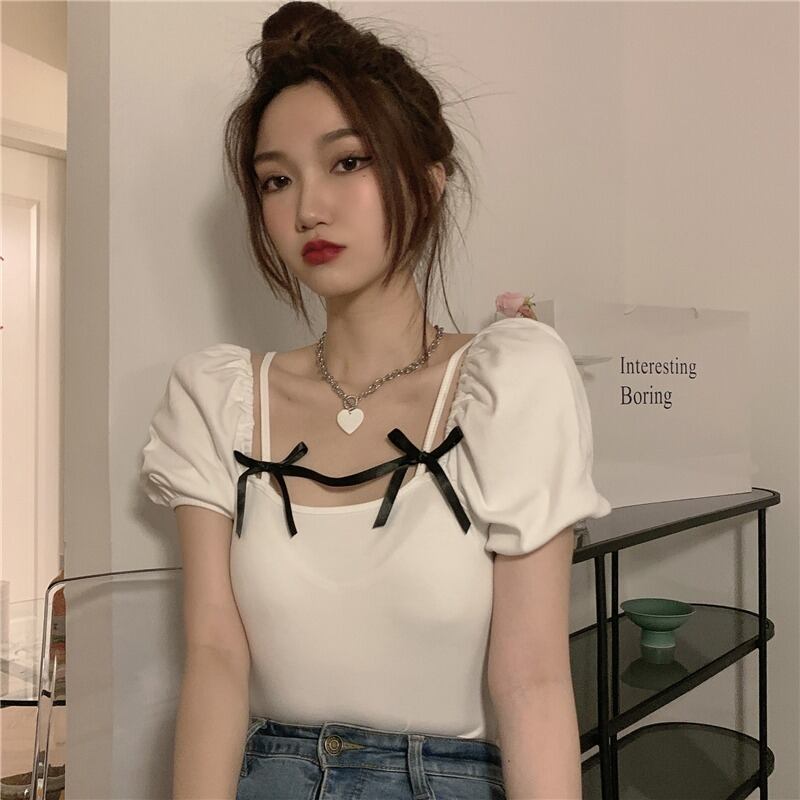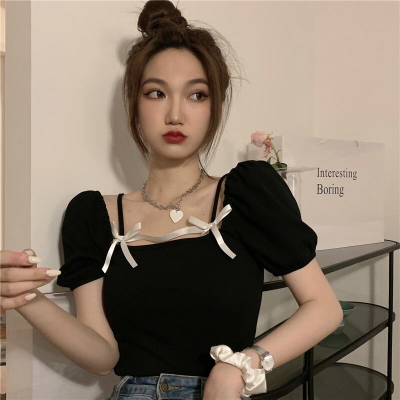 サマースタイルスリーブスリムリボンブラウス レディース 夏物 スクウェア ハンチェンe30410573725