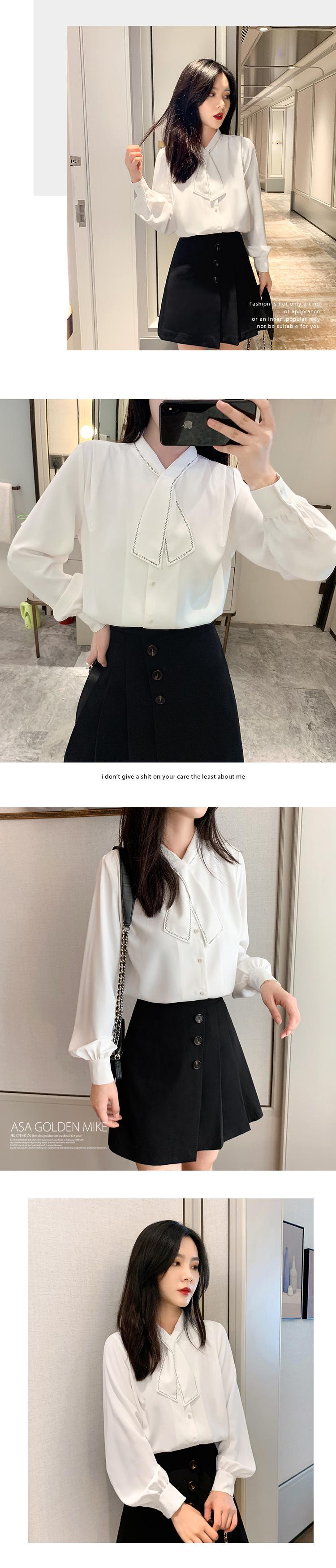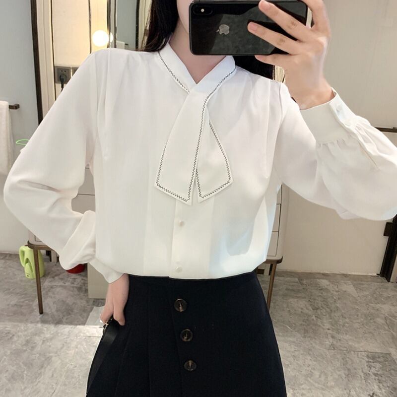 シャツ オータムホワイトルーズトップス レディース ロング 秋物 ハンチェンe36153137955
