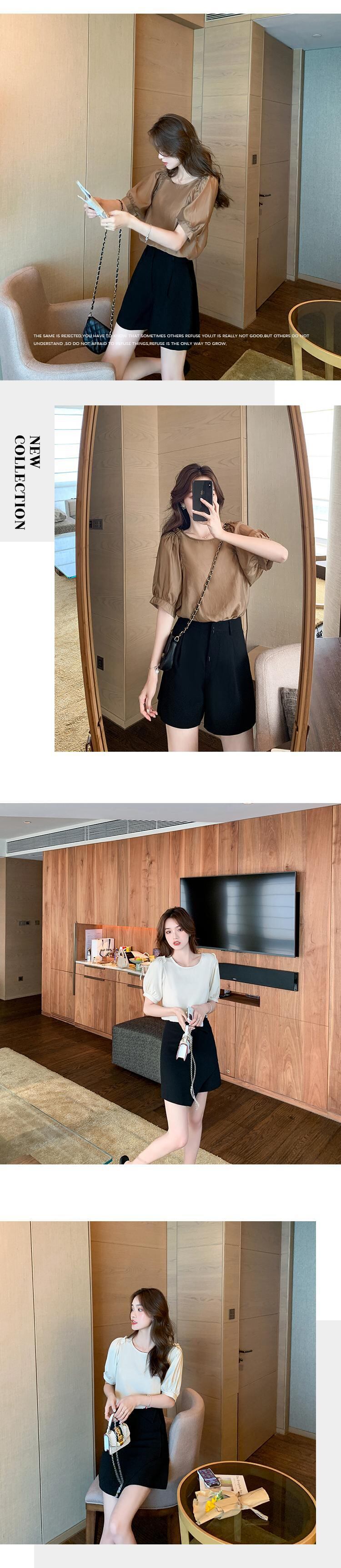 シャツ レディースラウンドネックスリーブシフォントップス Oネック ハンチェンe15850376767