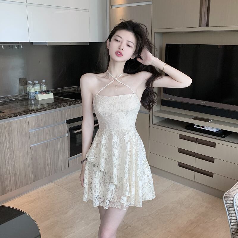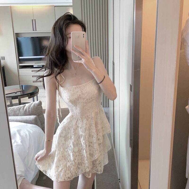 ショートスカート レースAラインドレス 大人ガーリー スウィート キュート カジュアル ハンチェンe7328839344