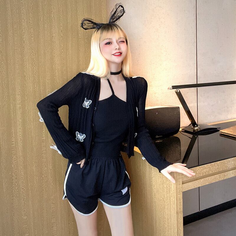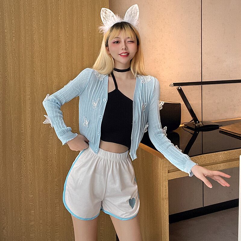 Butterflyデザイン ショートセーター レディースVネックカーディガン薄手 ロング ハンチェンe25734797371