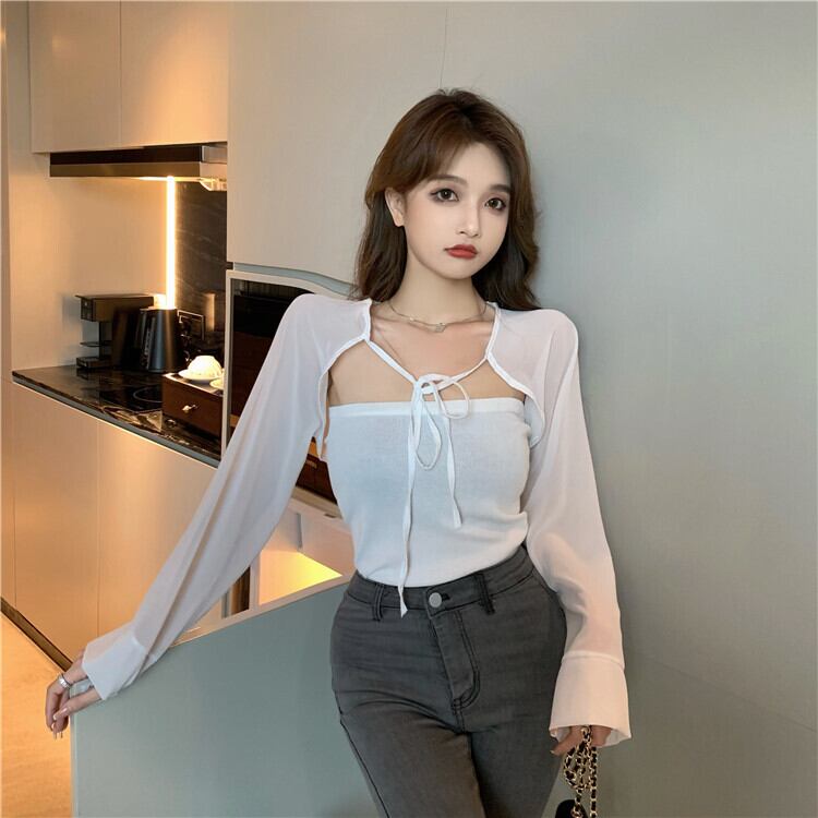 オータムトップス ブラウス 長袖スリーブカーディガン ロング 秋物 ハンチェンe24373592475