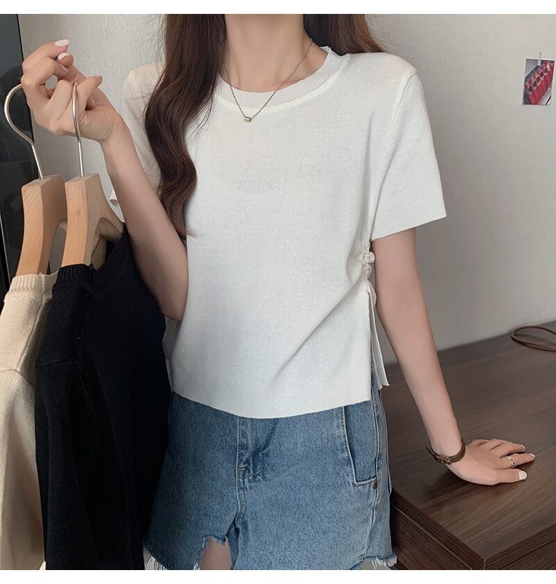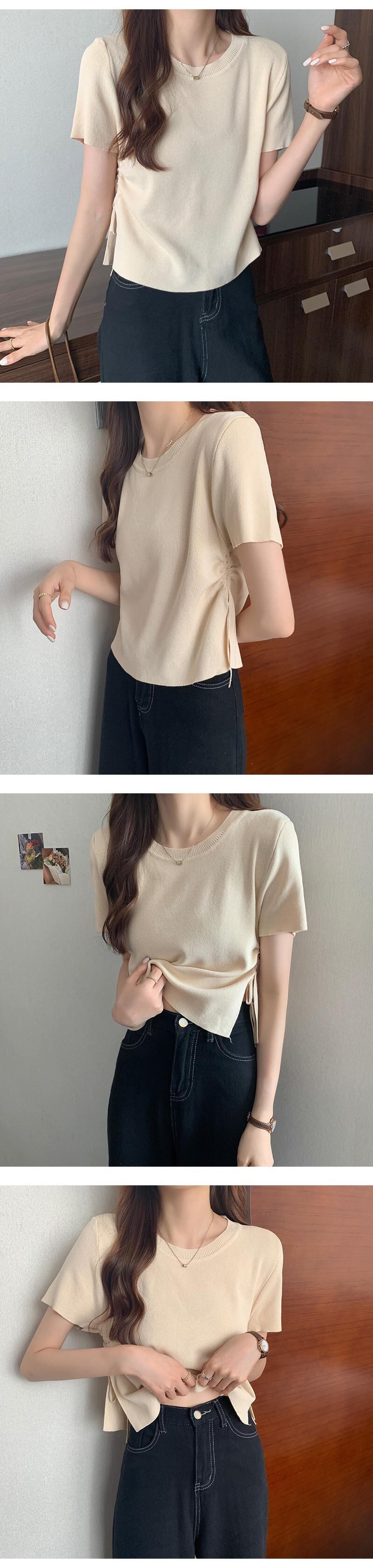 ギャザーショートプルオーバー 薄手ニットセーター スリムソリッド カラーブラウス ソリッドカラー ハンチェンe26450554294