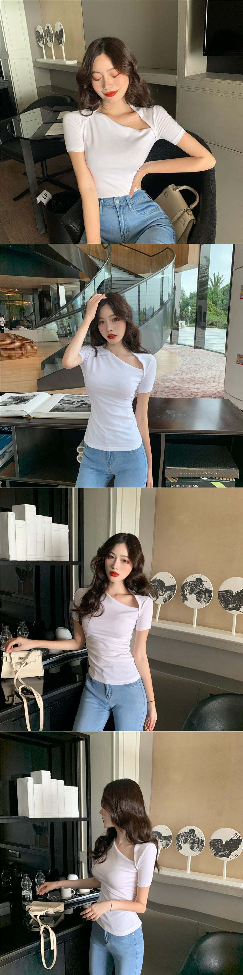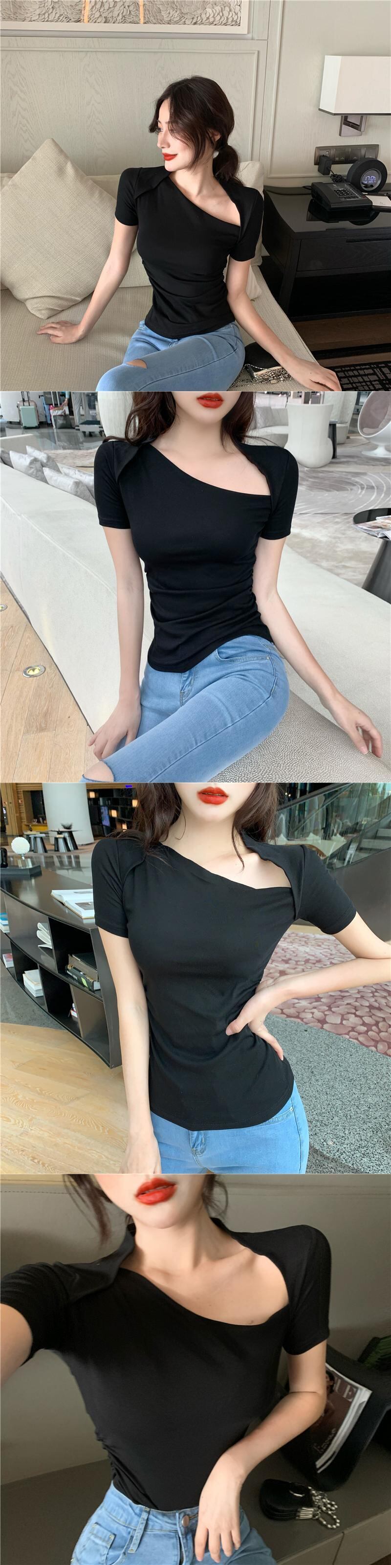 スリムフィットソリッド カラーTシャツ トップス ソリッドカラー ハンチェンe6364075550