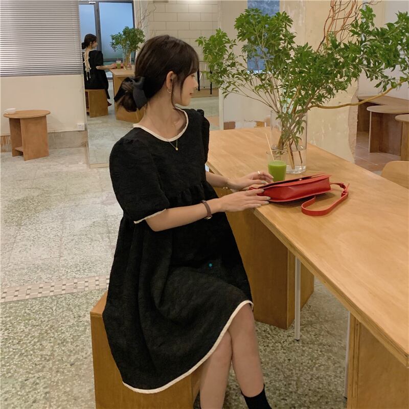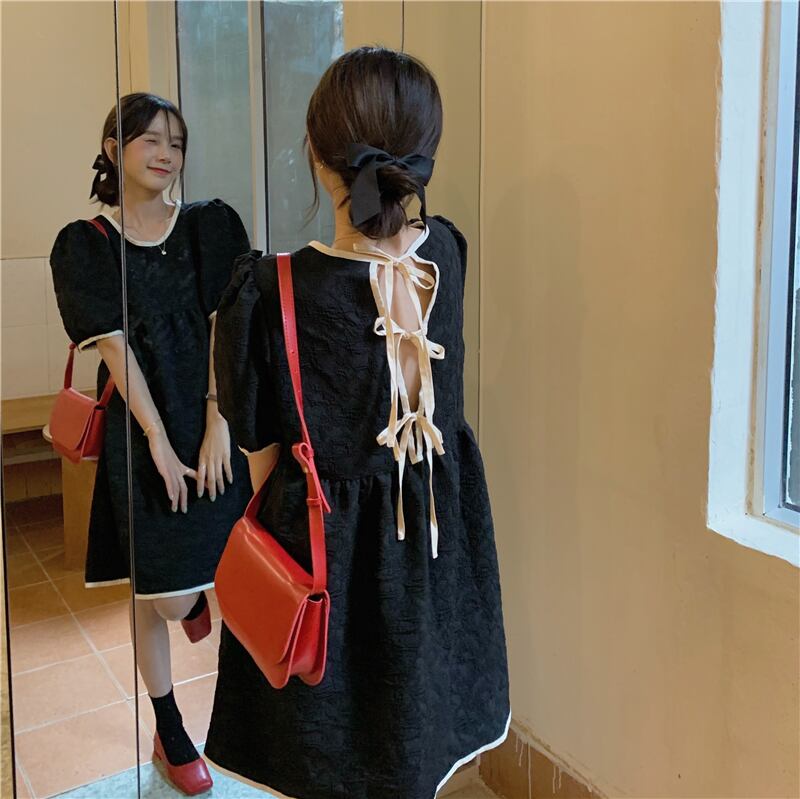 バックレースリボンルーズAラインスカート スタイルスリーブドレス 大人ガーリー スウィート キュート カジュアル ハンチェンe529820120