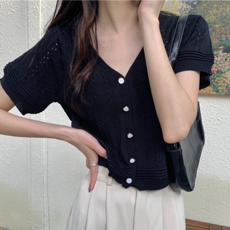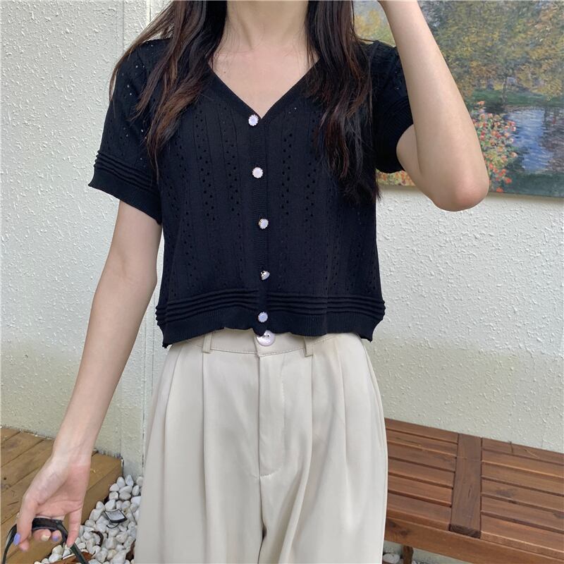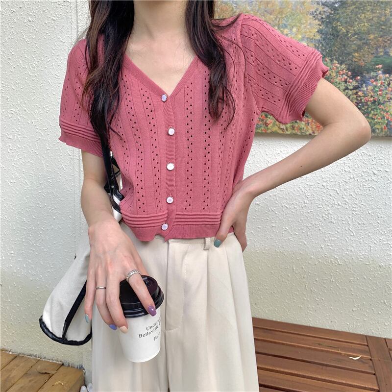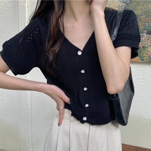 スタイルスリーブVネックニットカーディガンクロップドトップス レディース ハンチェンe29542095385