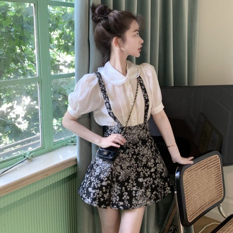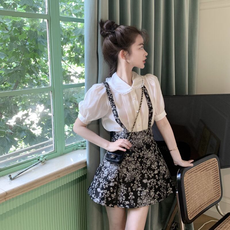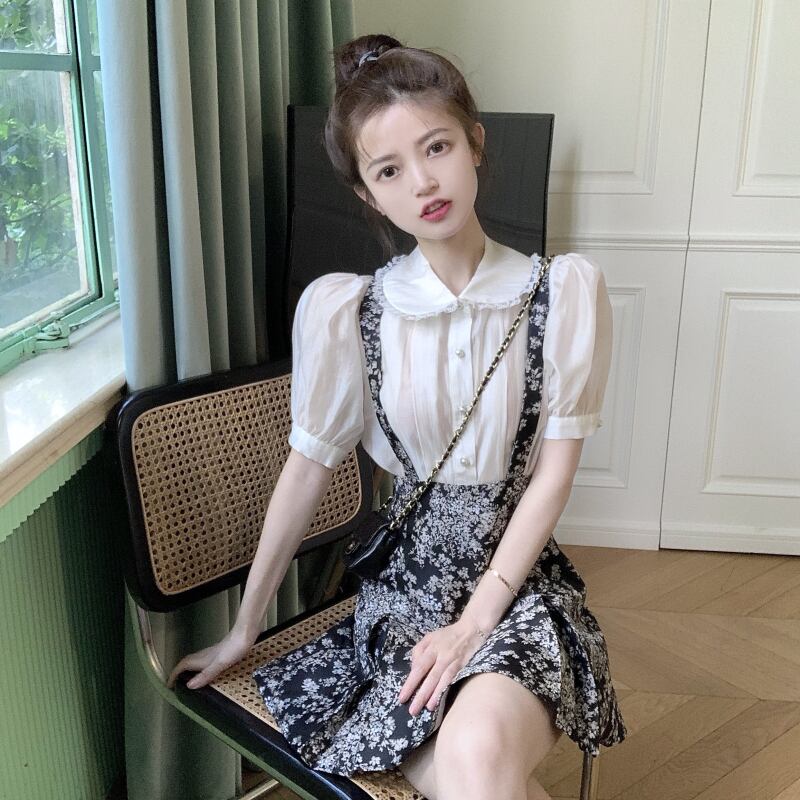 カラースリーブシャツ プリントドレス ハンチェンe27069529280