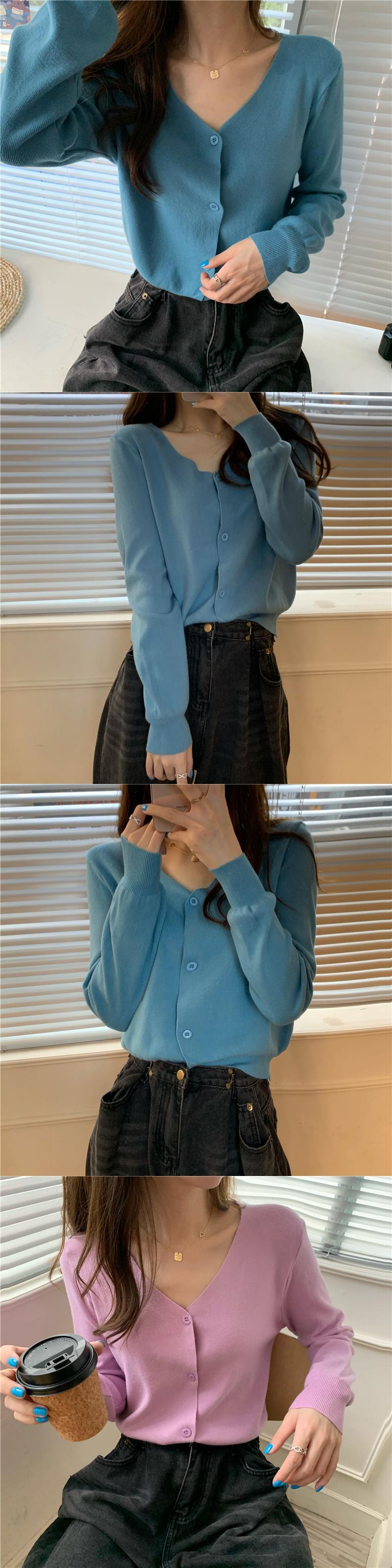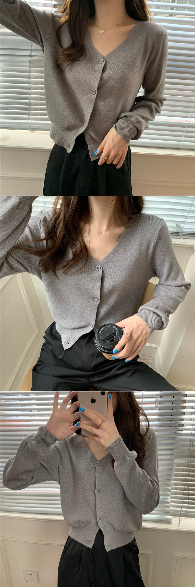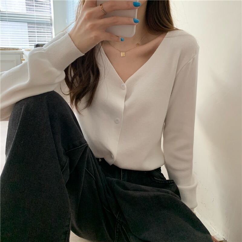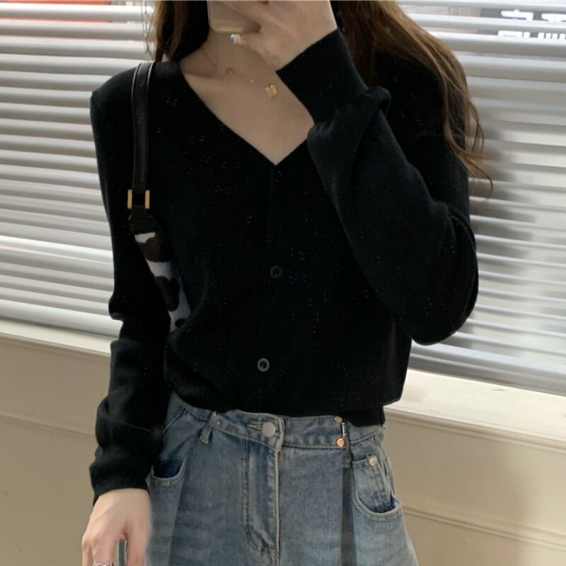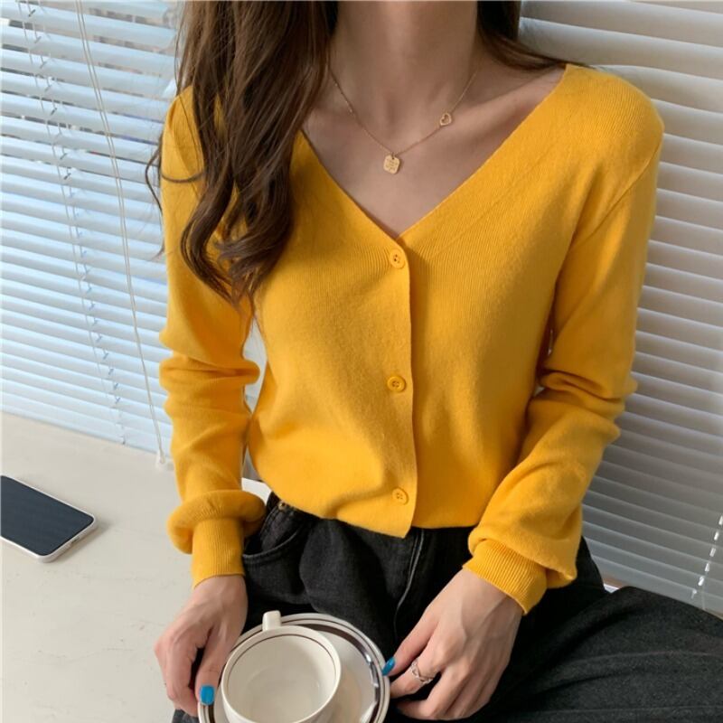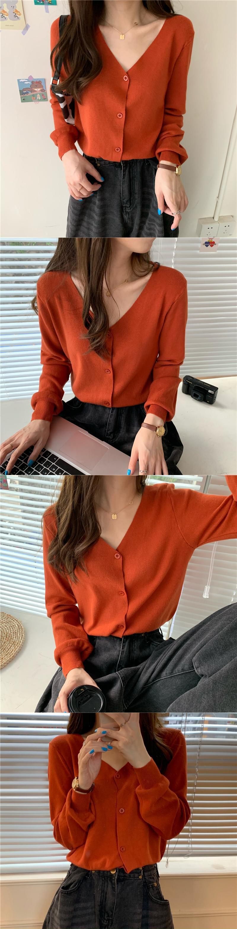 スタイルVネックニットカーディガンオータムベーシックソリッド カラーショートトップス レディース ロング 秋物 ソリッドカラー ハンチェンe48294859167