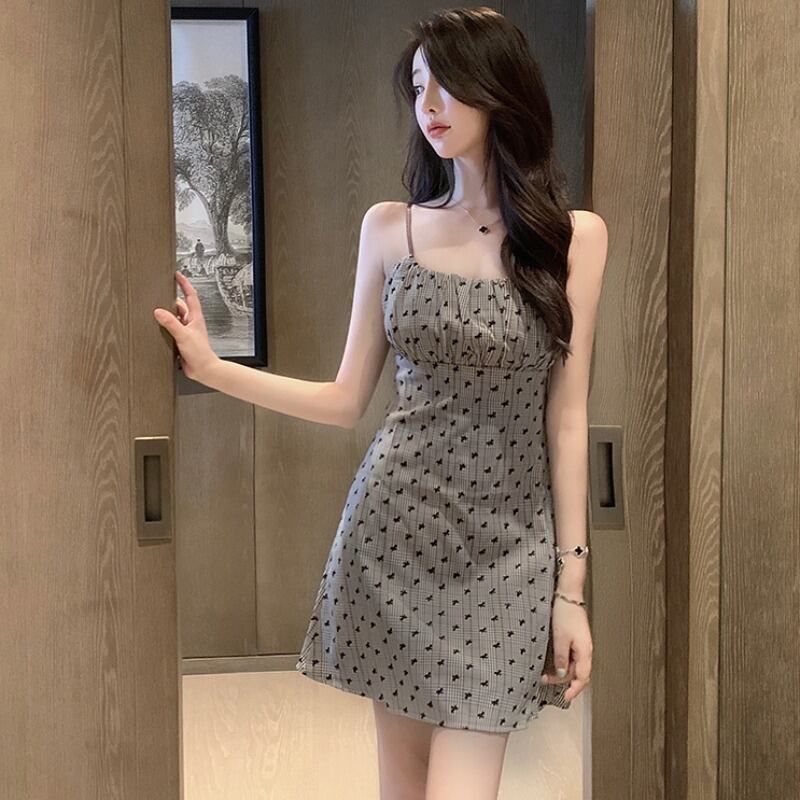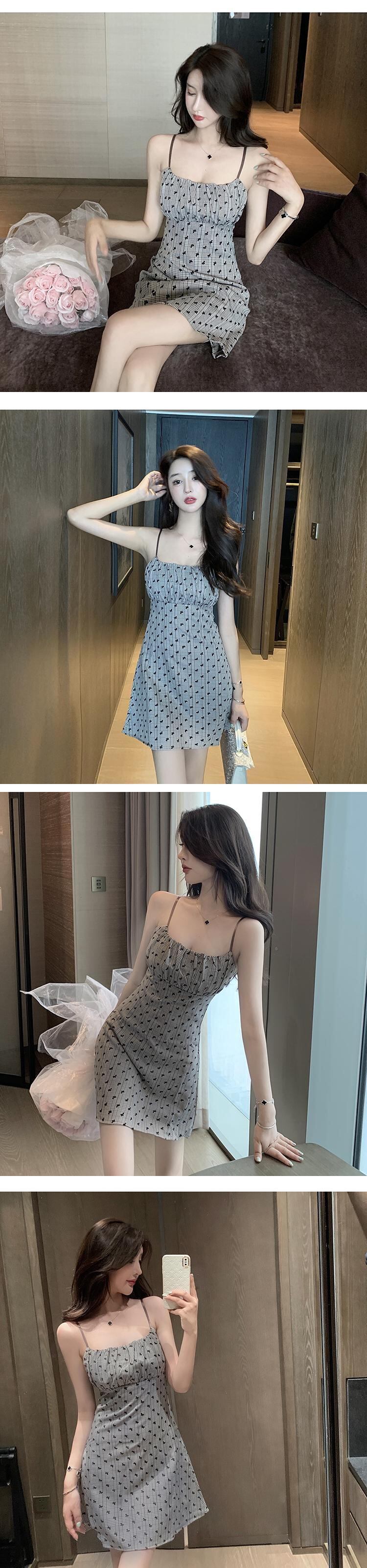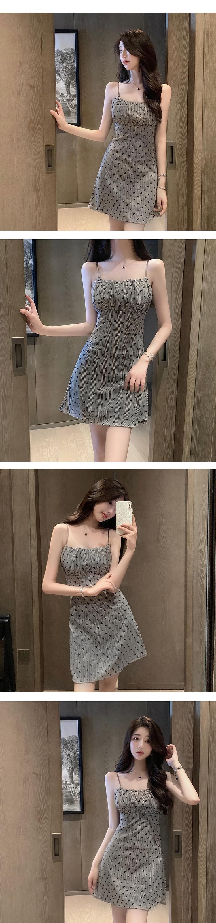 スタンダードプリントウェスト薄手Aラインドレス レトロ ハンチェンe55671265341