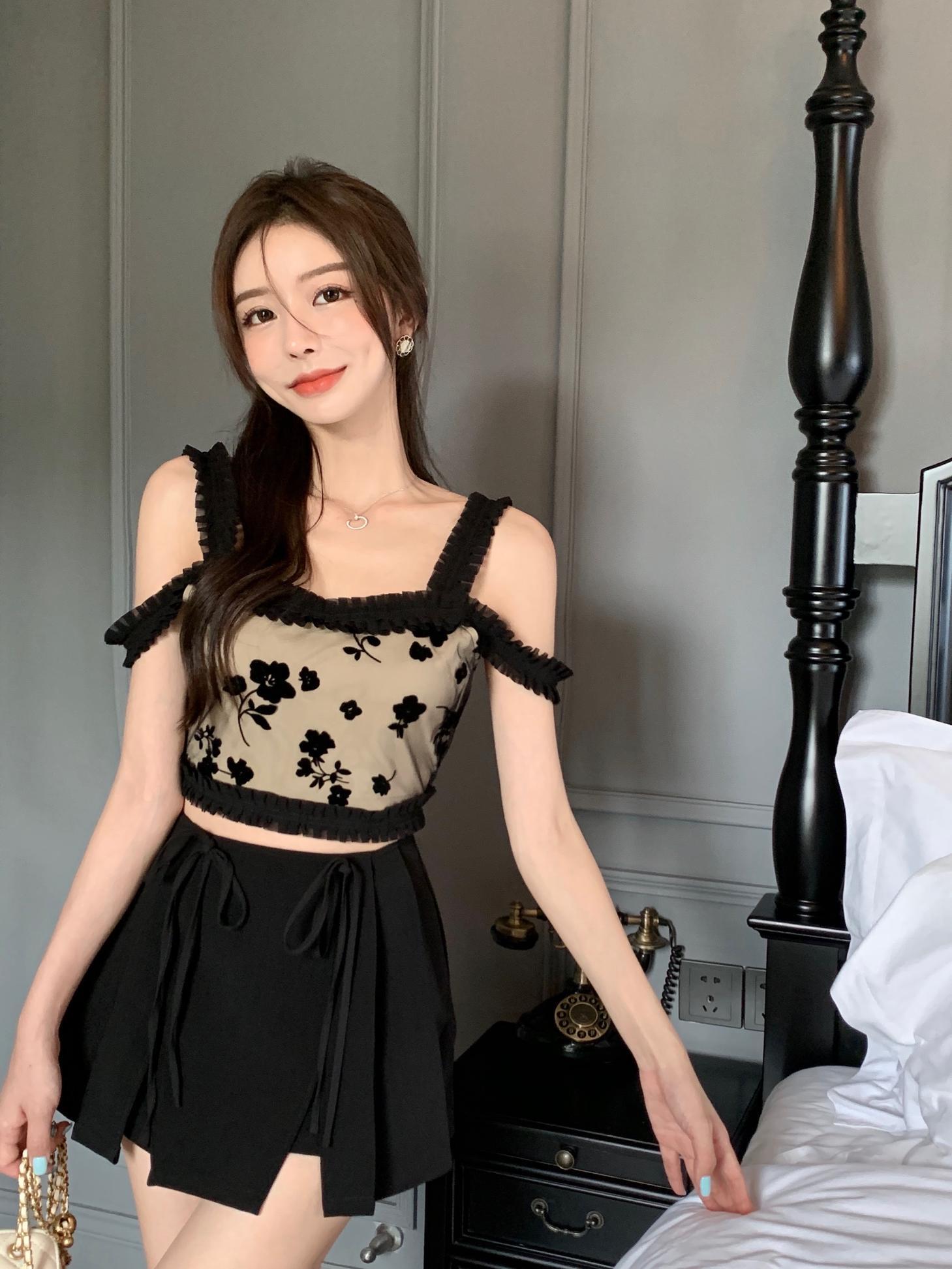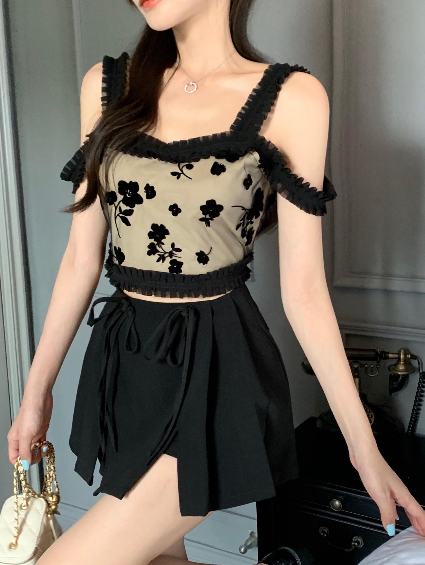 ダークトップス ハイウェストウェストプリーツスカート ハンチェンe38725915214