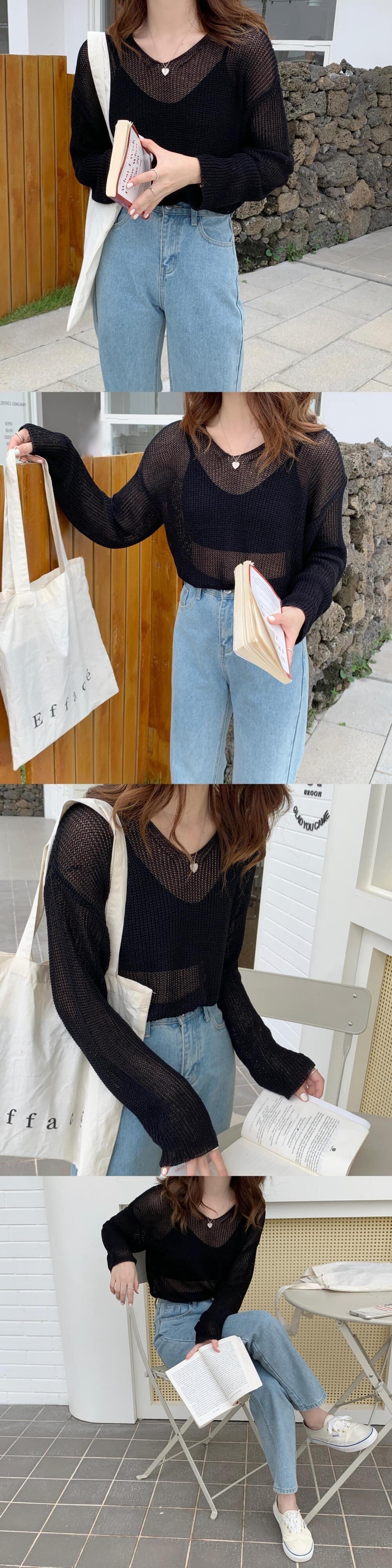 ルーズVネックブラウス オータムセーター トップス レディース ロング 秋物 ハンチェンe96010467497