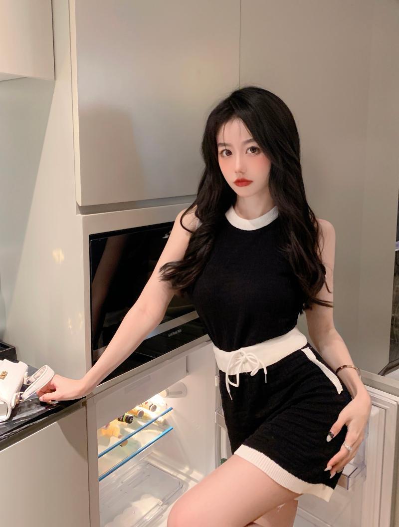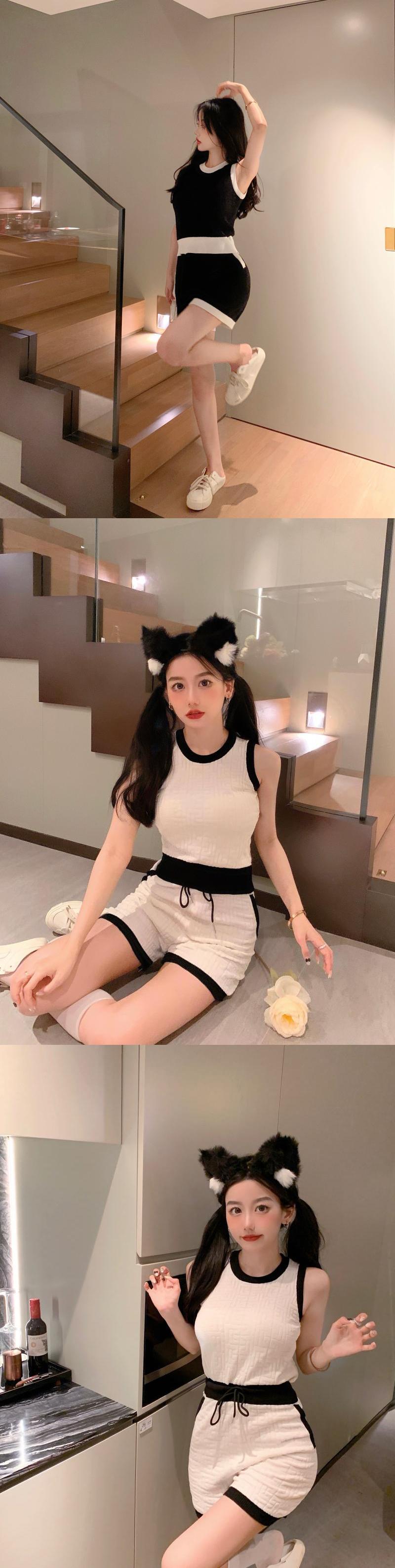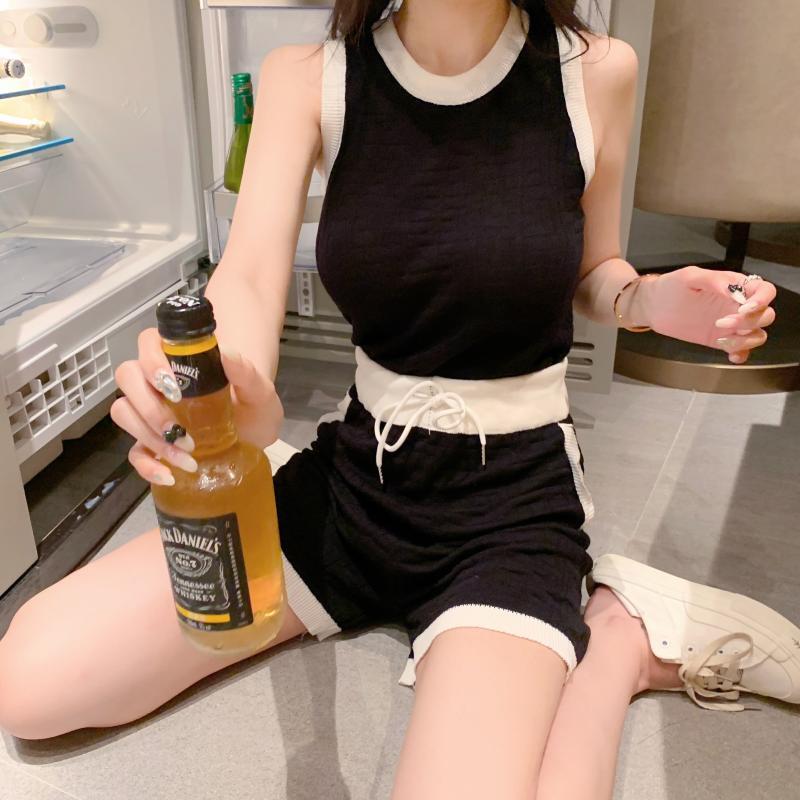 ショートニットセーター ハイウェストウェストカジュアルショーツ ブルマー ハンチェンe97837212038