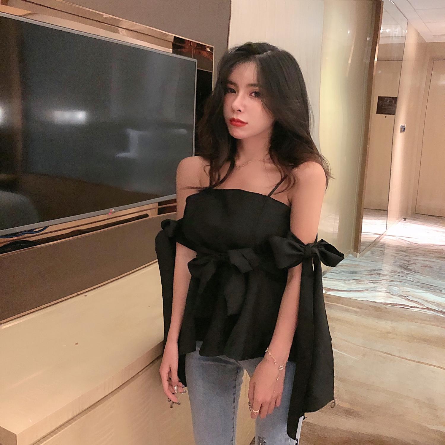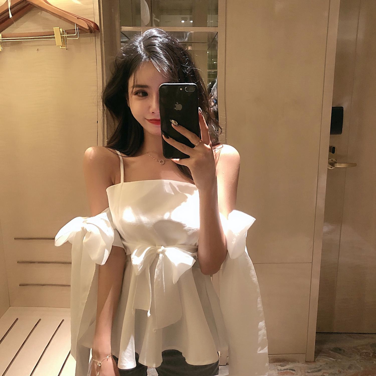 サマーストラップレスリボンウェストスリムトップス レディース 大人ガーリー スウィート キュート カジュアル 夏物 ハンチェンe7012548080