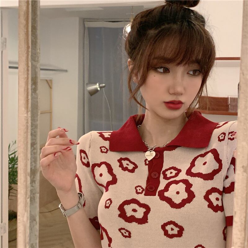 スタイルカラールーズ薄手ニットセーター ブラウス レディース フラワーデザイン ハンチェンe60111814883