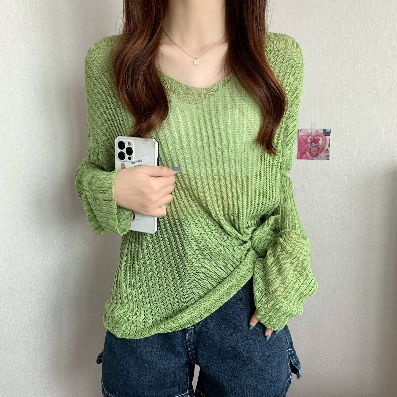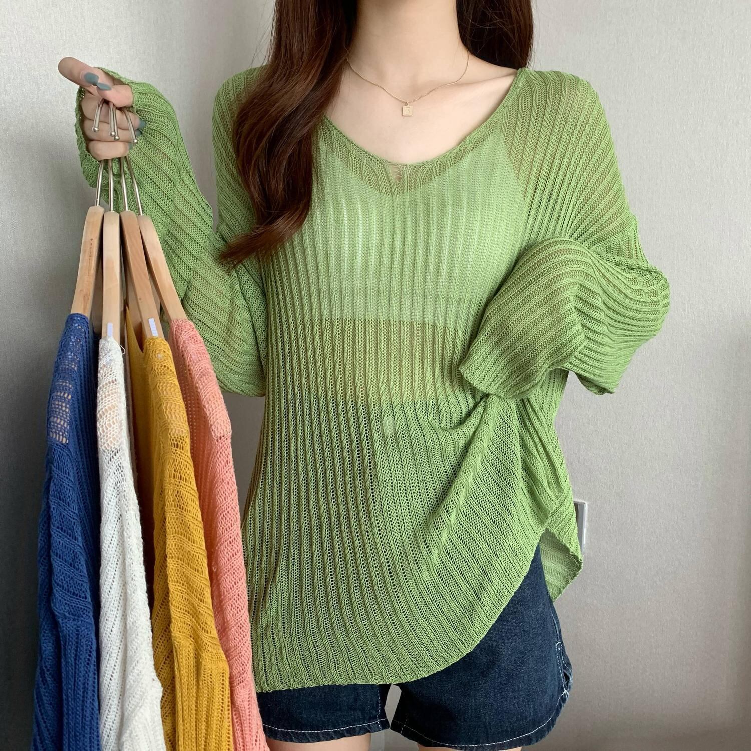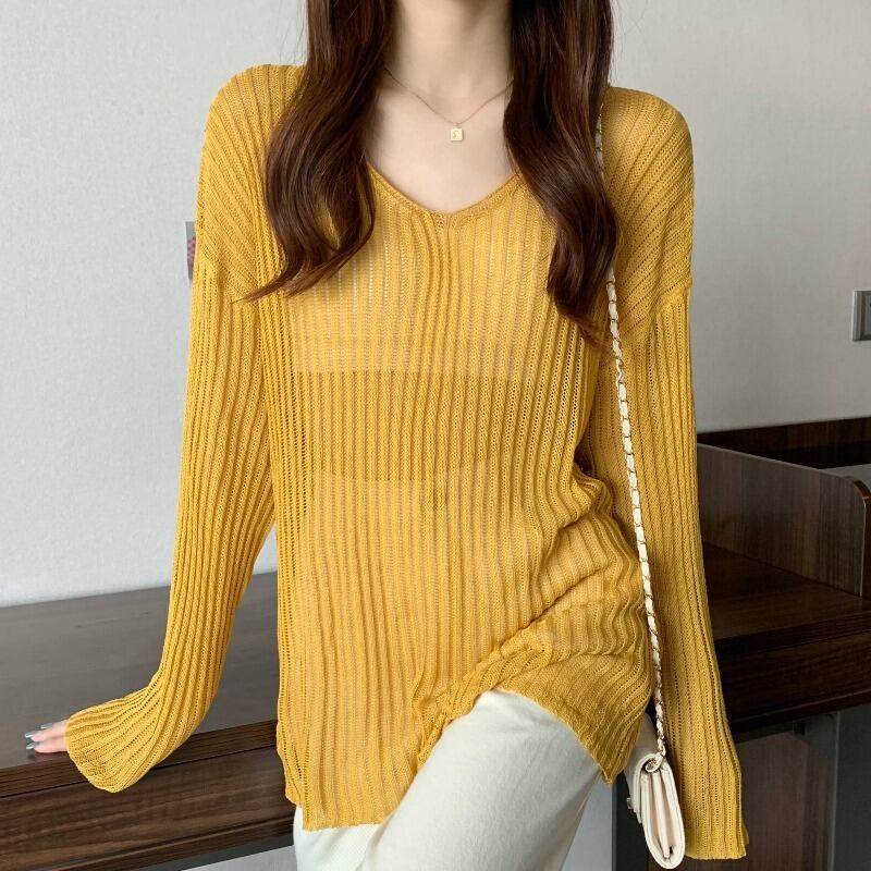 スタイルルーズブラウス オータムVネックソリッド カラーニットセーター トップス レディース ロング 秋物 ソリッドカラー ハンチェンe11636673751