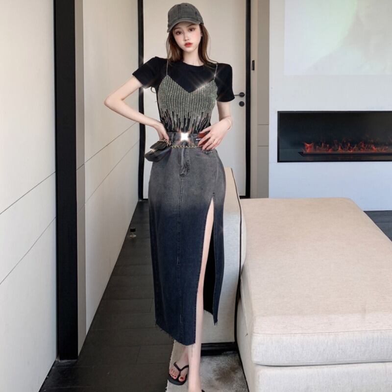 Tシャツ ハイウェストウェストスカート ハンチェンe3422183629