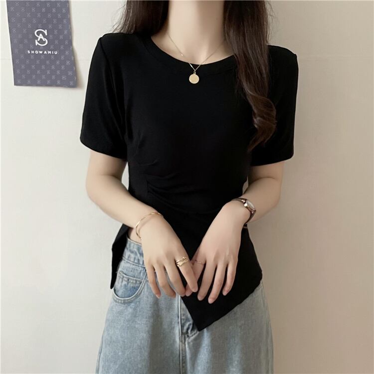 ラウンドネックソリッド カラーTシャツ トップス レディース Oネック ソリッドカラー ハンチェンe95203595394