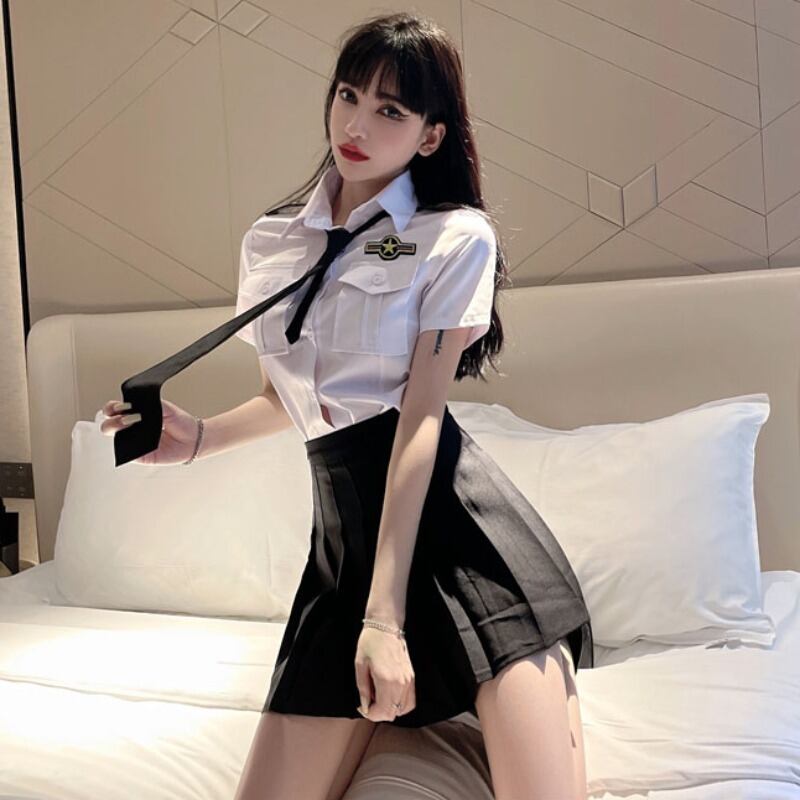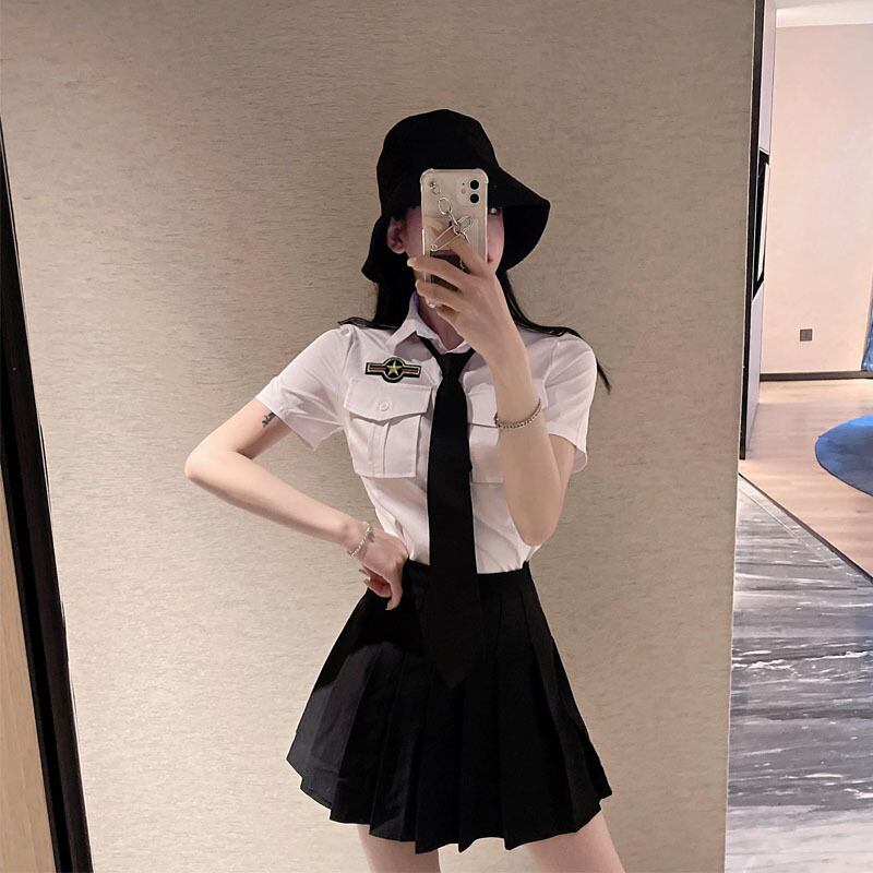 シャツ ハイウェストウェストプリーツスカート ハンチェンe25505880104