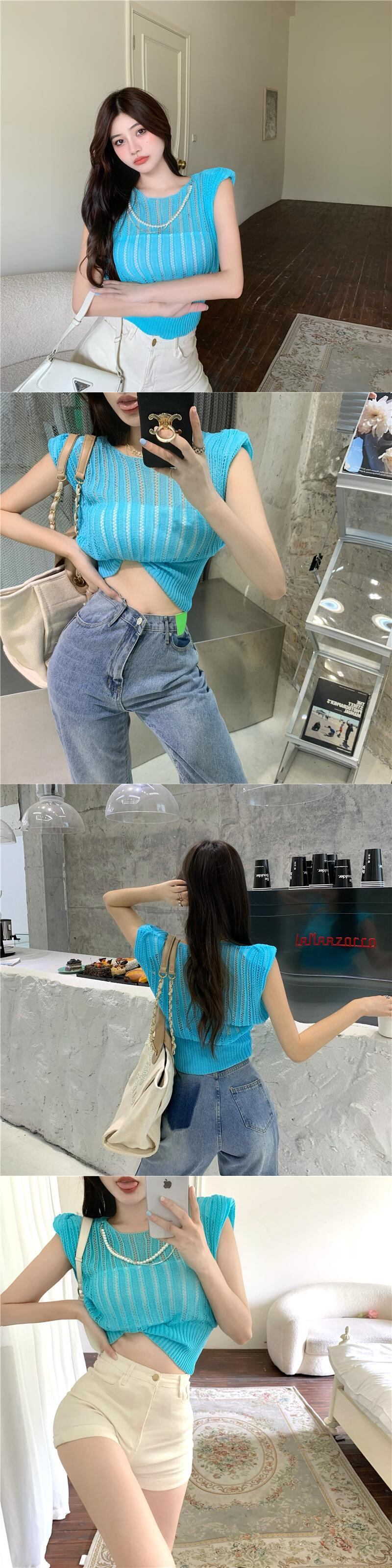 薄手ニットセーター ノースリーブブラウス シルク ハンチェンe89694631912