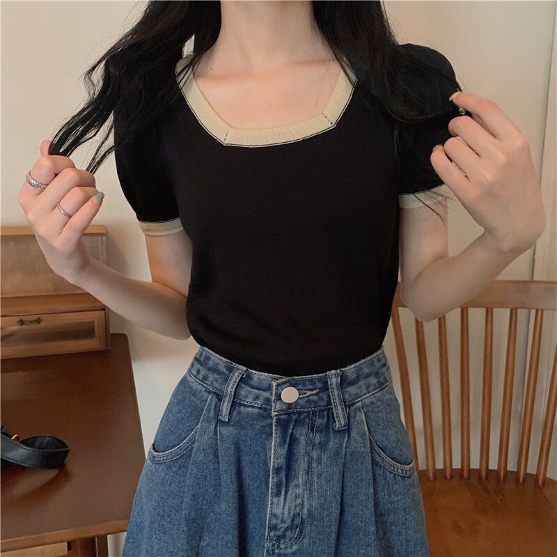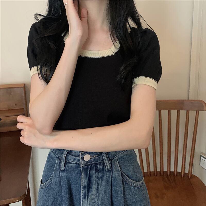 薄手ニットセーター スタイルソリッド カラーブラウス 大人ガーリー スウィート キュート カジュアル シルク ソリッドカラー スクウェア ハンチェンe73751471383