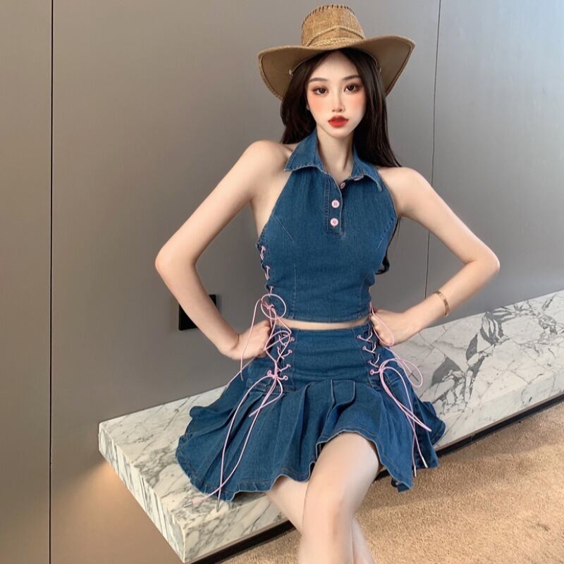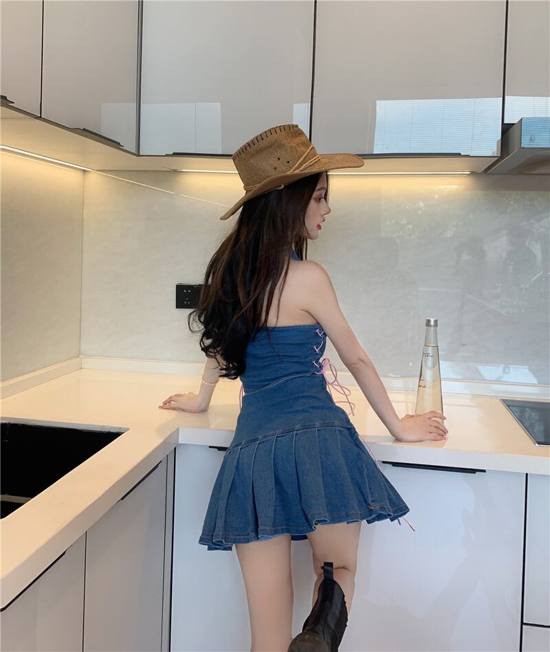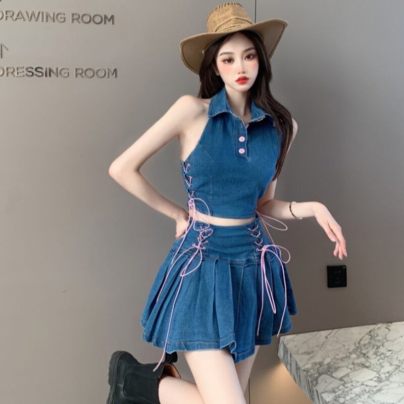 色:ジージャン,デニムプリーツスカート