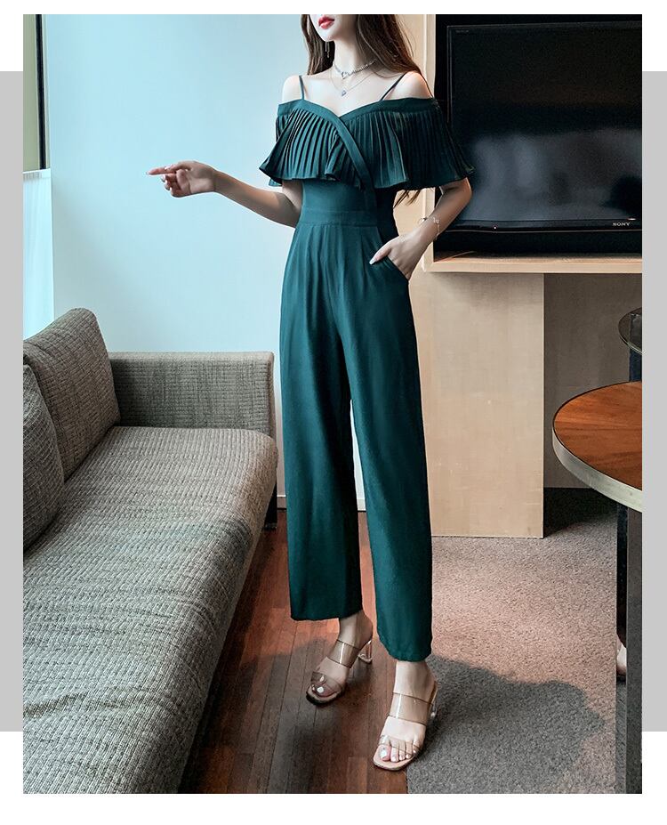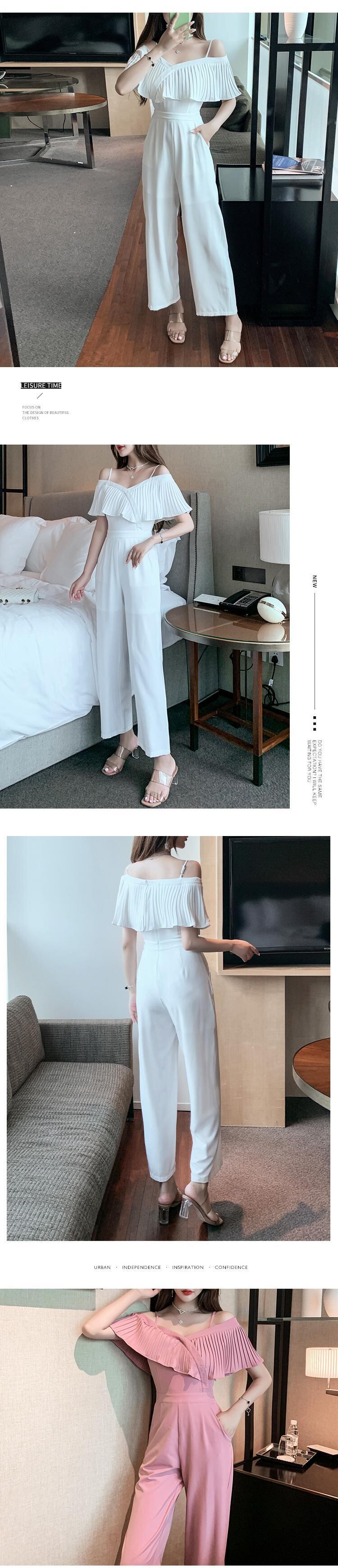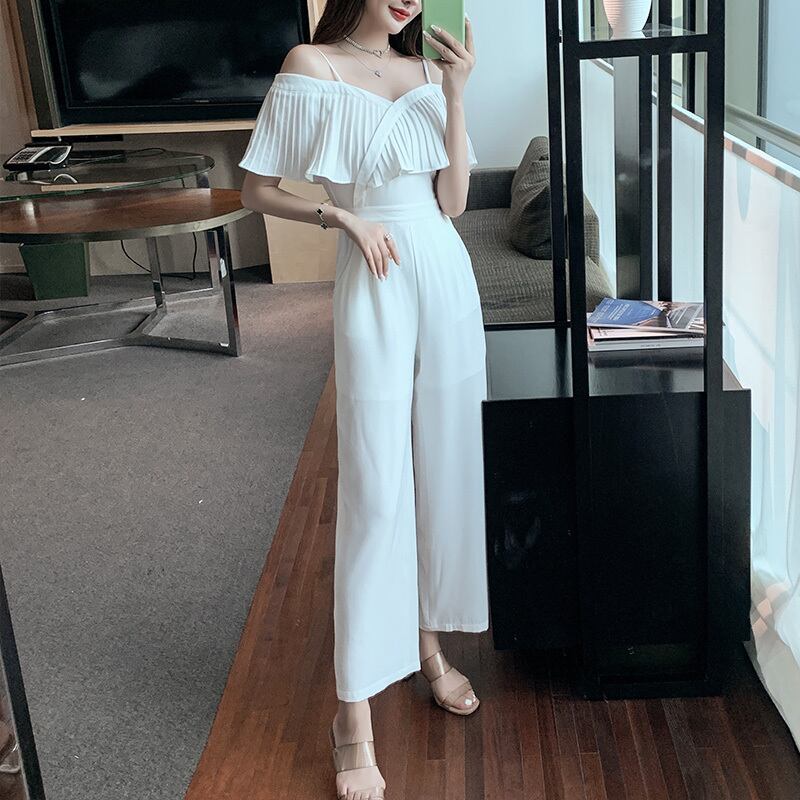 ホワイトハイウェストパンツ サマージャンプスーツ オールインワン 夏物 ハンチェンe55631708246