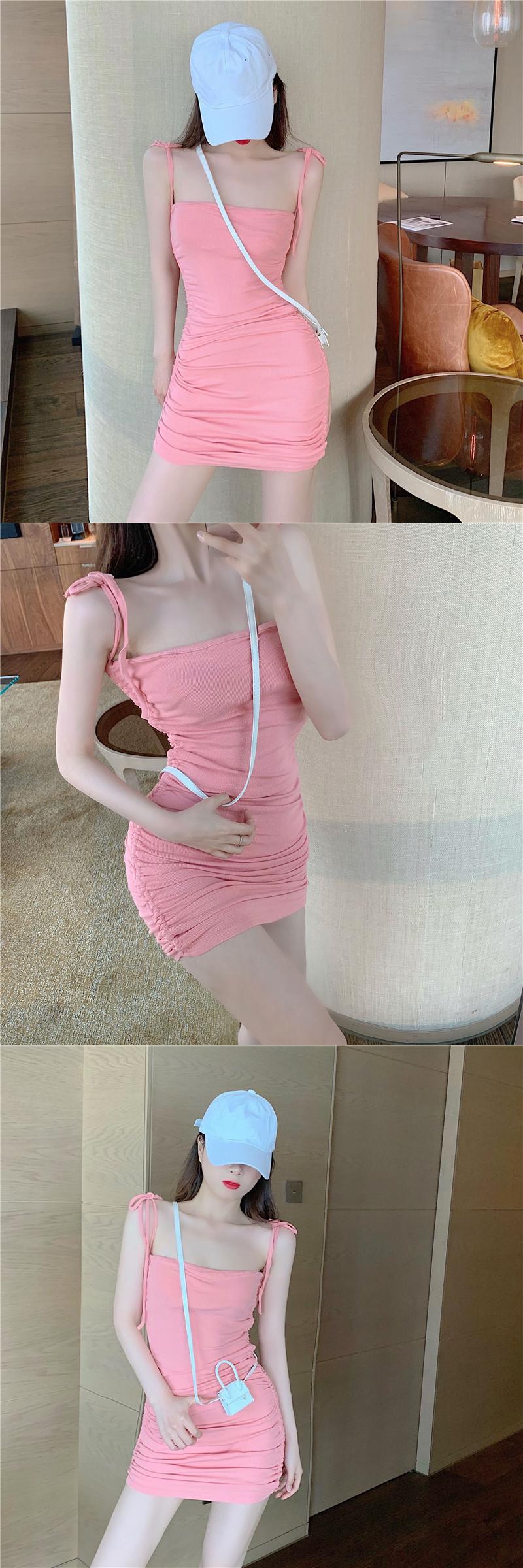 スリムショートスカート バンドプリーツドレス レディース ハンチェンe10720695569