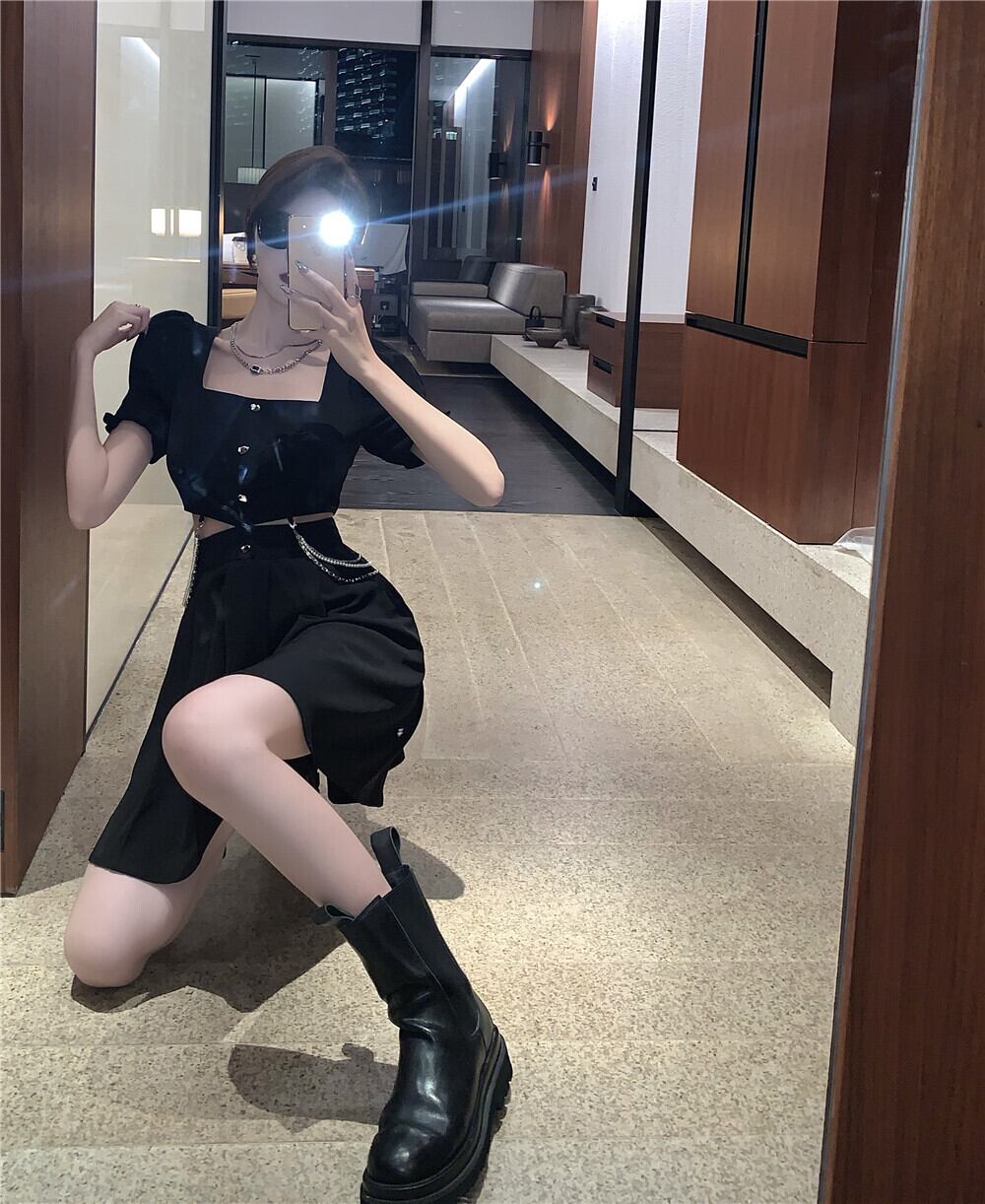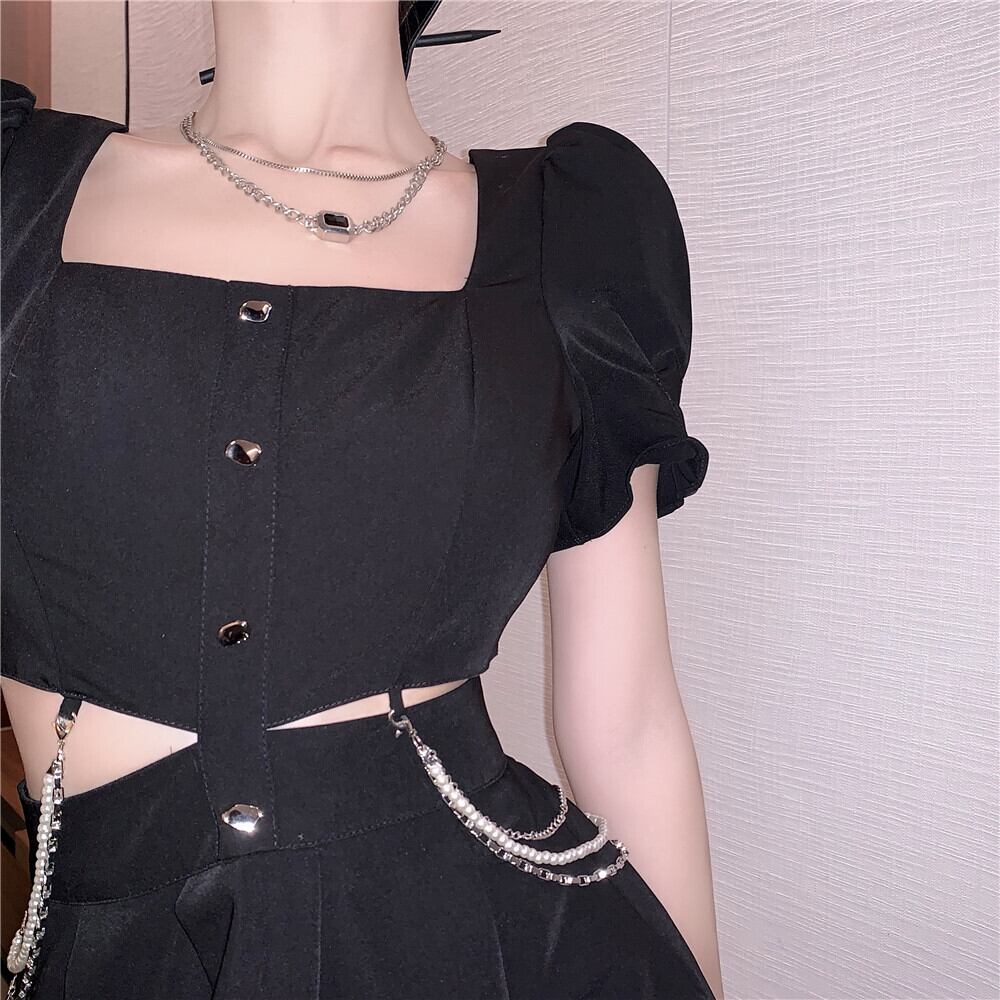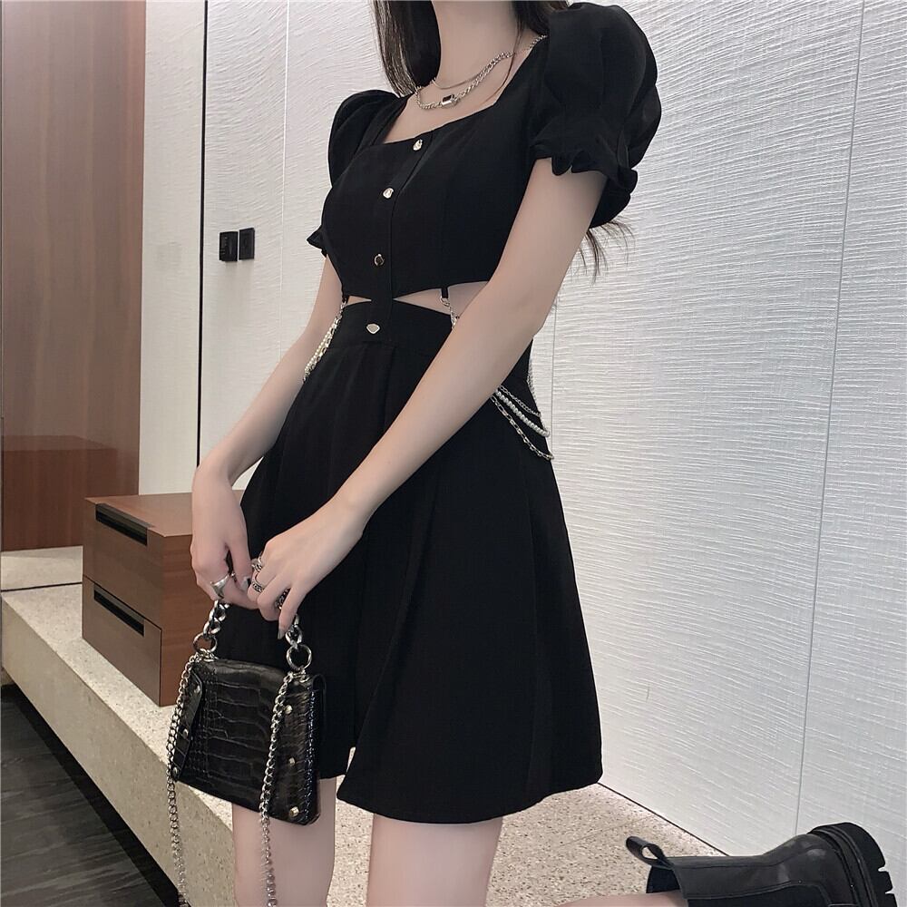 ドレス スリーブウェストAラインブラック ストリート スクウェア ハンチェンe57679594979