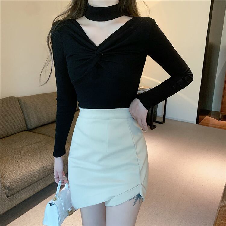 ソリッド カラートップス オータムVネック薄手シャツ Tシャツ レディース ロング 秋物 ソリッドカラー ハンチェンe72344566866