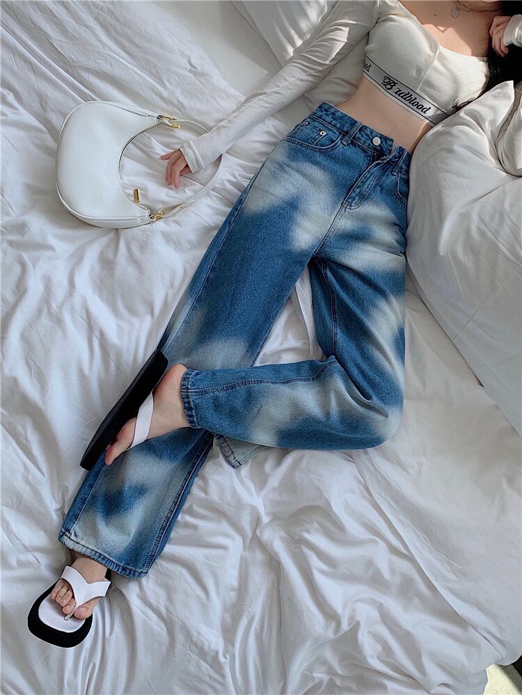 オータムハイウェストウェストルーズワイドレッグカジュアルジーンズ レディース 秋物 ワイドパンツ ハンチェンe78020163040