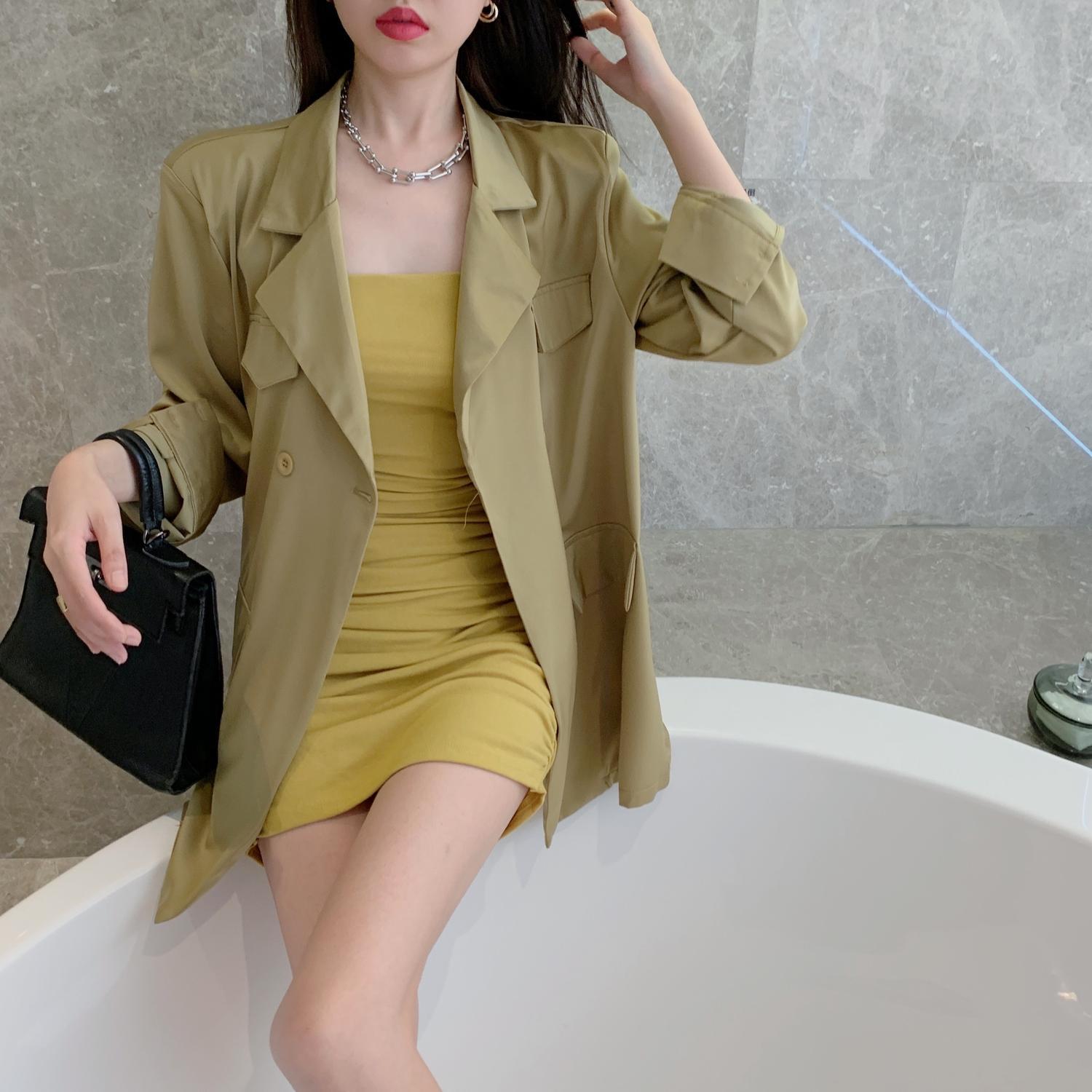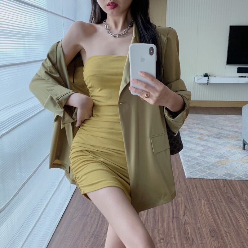 色:ピンクパープルスーツ,クリムゾンイエローのスーツ,ローズレッドのチューブトップスカート,黄色のチューブトップスカート