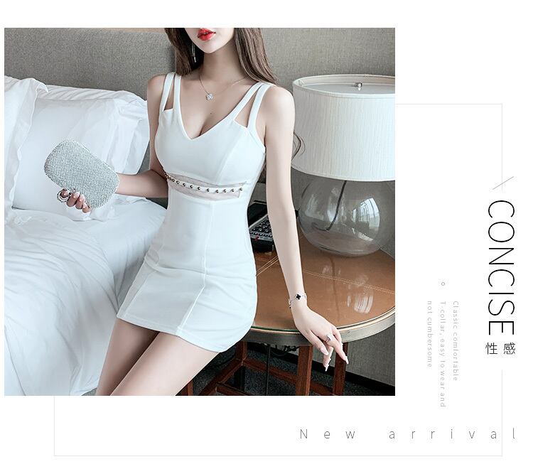 スタイルドレス サマーVネックスリムスカート ハイウェストウェスト薄手 夏物 ステッチ ハンチェンe79437449384