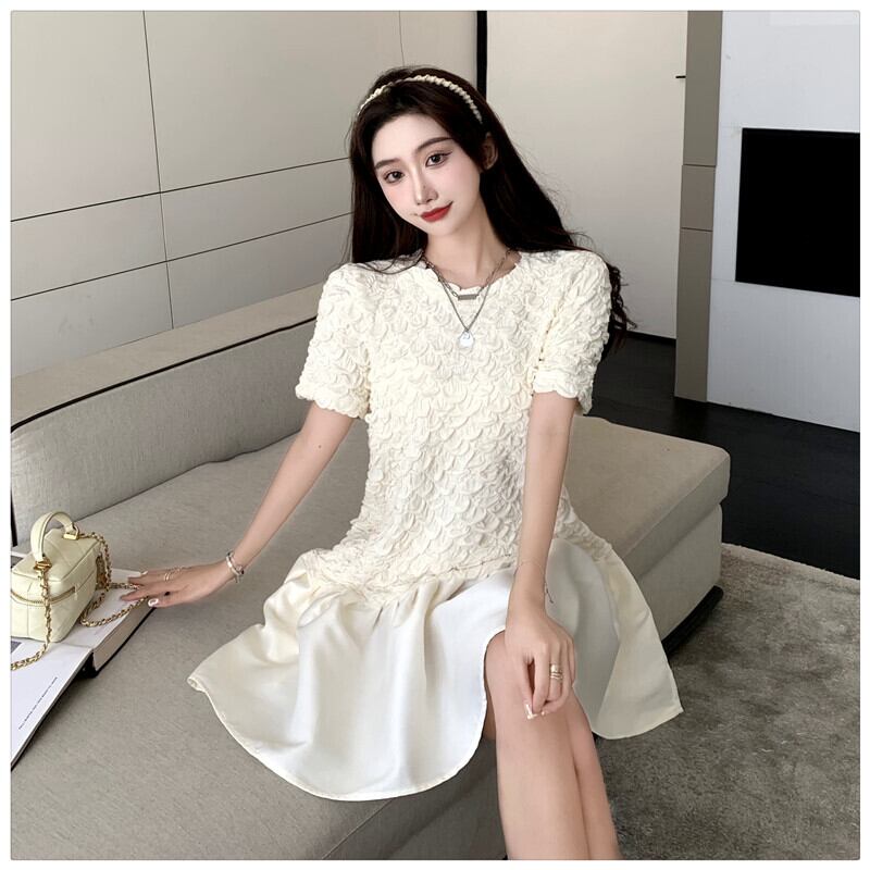 スタイルスカート サマースタンダード格子柄ルーズドレス レトロ レース 夏物 ハンチェンe82578386394