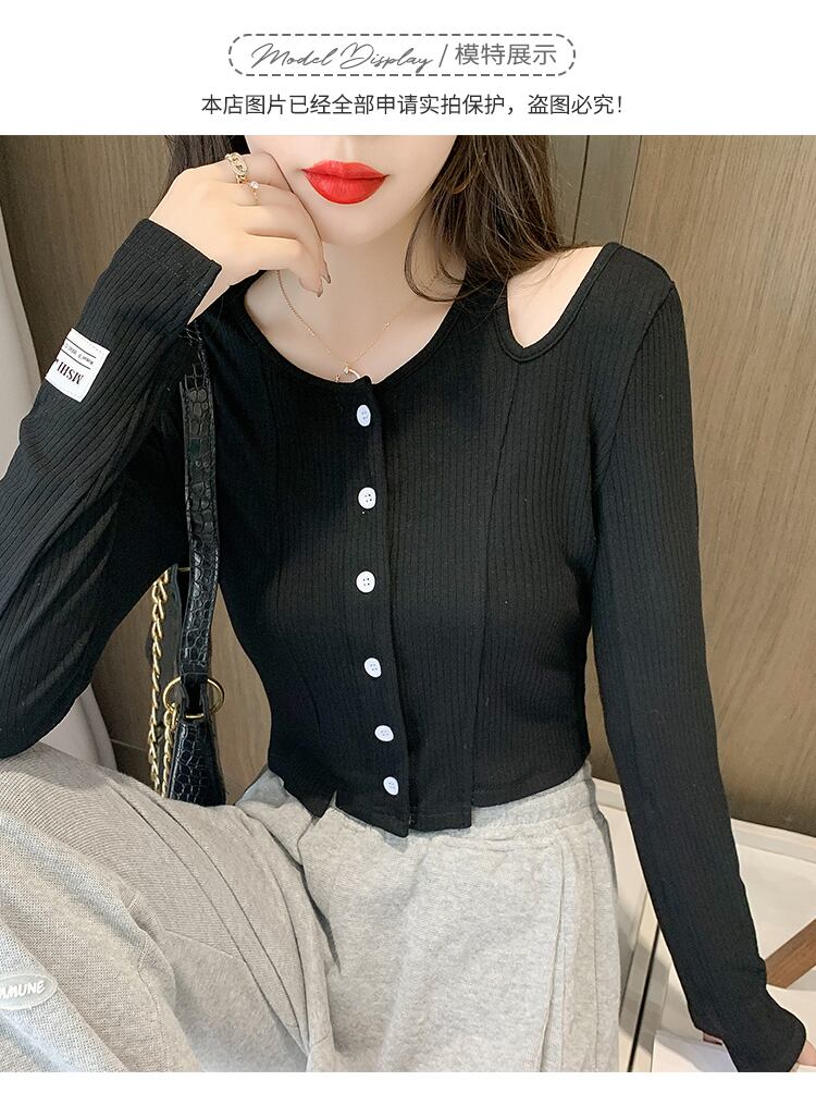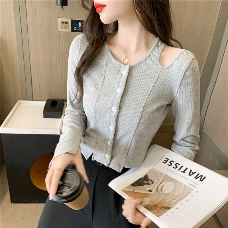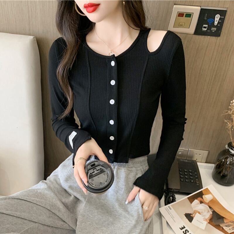 オータムショートセーター Tシャツ トップス レディース ロング 秋物 オフショルダー ハンチェンe88894893045